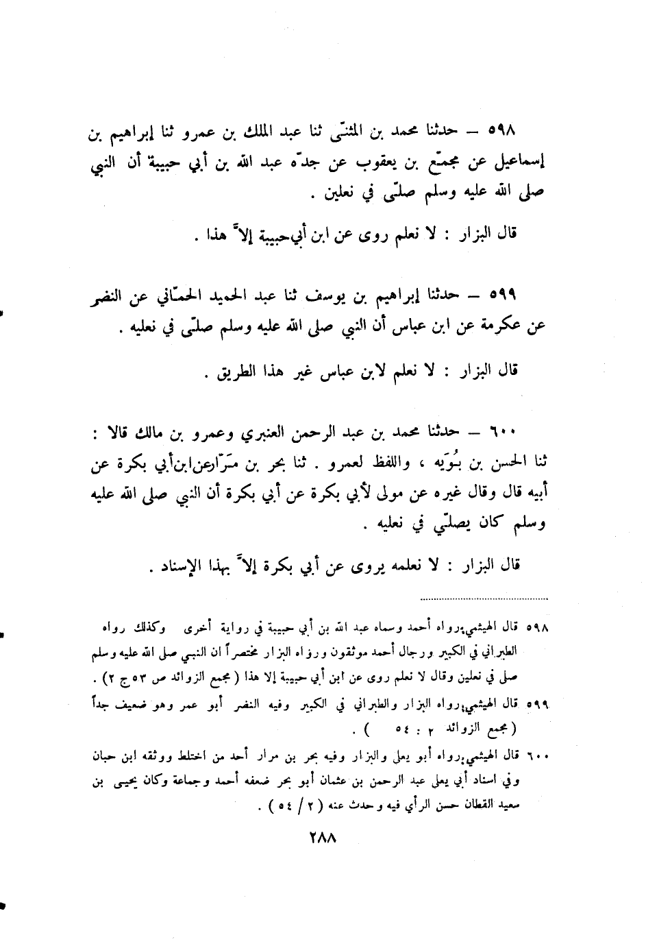 599 - حَدَّثَنَا إِبْرَاهِيمُ بْنُ يُوسُفَ، ثنا عَبْدُ الْحَمِيدِ الْحِمَّانِيُّ، عَنِ النَّضْرِ، عَنْ عِكْرِمَةَ، عَنِ ابْنِ عَبَّاسٍ، أَنَّ النَّبِيَّ صَلَّى اللَّهُ عَلَيْهِ وَسَلَّمَ صَلَّى فِي نَعْلَيْهِ.