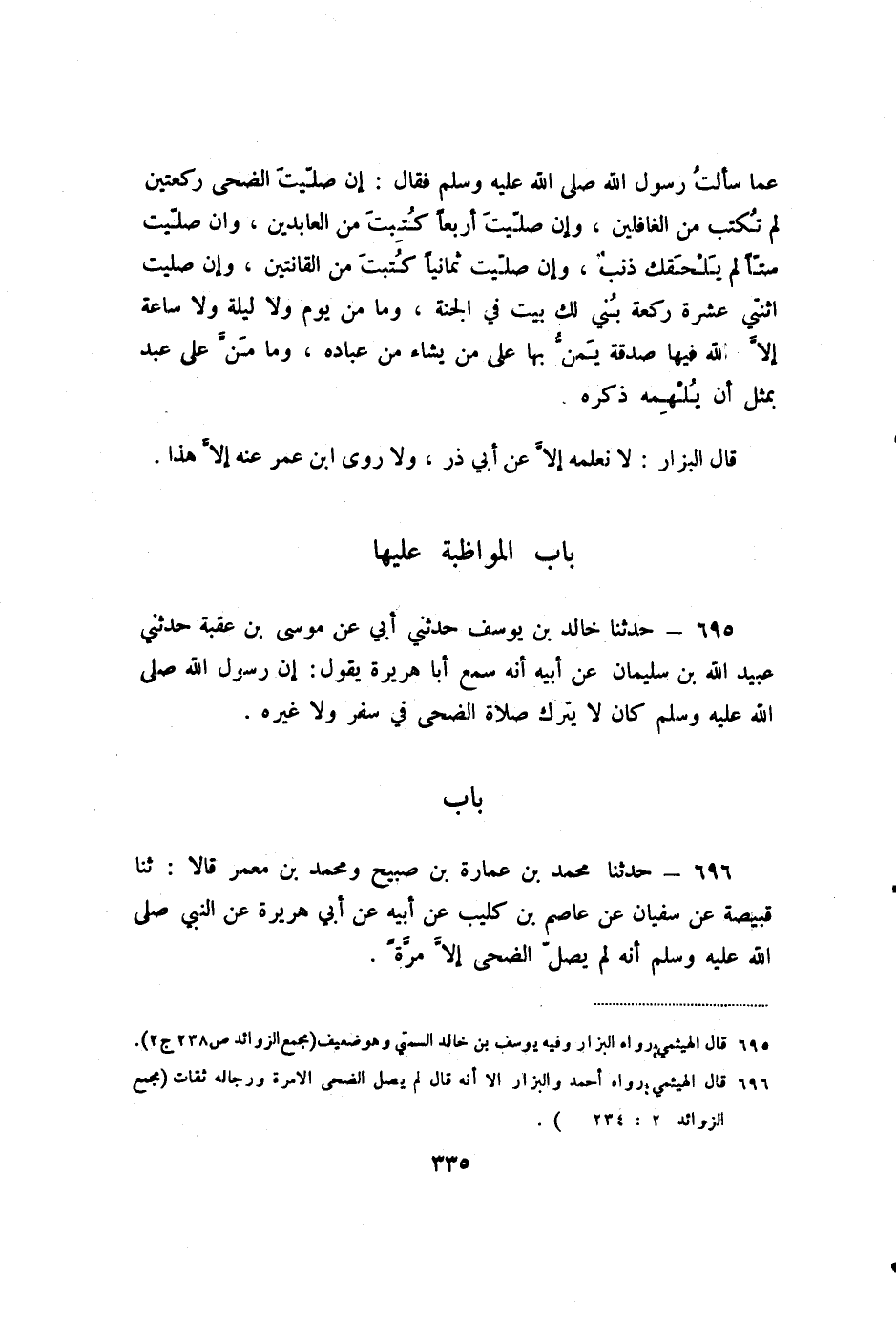 695 - حَدَّثَنَا خَالِدُ بْنُ يُوسُفَ، حَدَّثَنِي أَبِي، عَنْ مُوسَى بْنِ عُقْبَةَ، حَدَّثَنِي عُبَيْدُ اللَّهِ بْنُ سُلَيْمَانَ، عَنْ أَبِيهِ، أَنَّهُ سَمِعَ أَبَا هُرَيْرَةَ يَقُولُ: إِنَّ رَسُولَ اللَّهِ صَلَّى اللَّهُ عَلَيْهِ وَسَلَّمَ كَانَ «لا يَتْرُكُ صَلاةَ الضُّحَى فِي سَفَرٍ وَلا غَيْرِهِ» .