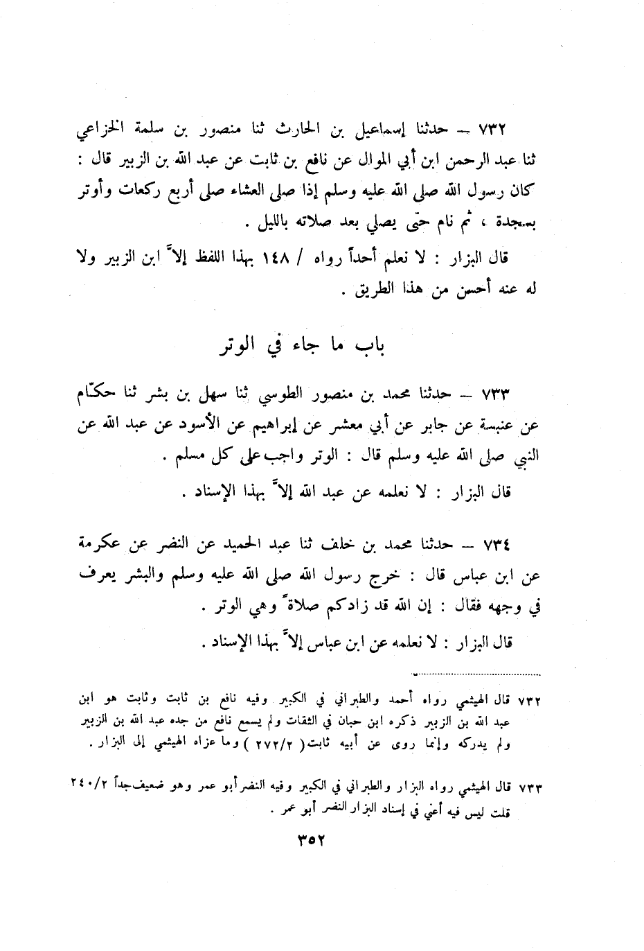 733 - حَدَّثَنَا مُحَمَّدُ بْنُ مَنْصُورٍ الطُّوسِيُّ، ثنا سَهْلُ بْنُ بِشْرٍ، ثنا حَكَّامٌ، عَنْ عَنْبَسَةَ، عَنْ جَابِرٍ، عَنْ أَبِي مَعْشَرٍ، عَنْ إِبْرَاهِيمَ، عَنِ الأَسْوَدِ، عَنْ عَبْدِ اللَّهِ، عَنِ النَّبِيِّ صَلَّى اللَّهُ عَلَيْهِ وَسَلَّمَ، قَالَ: «الْوِتْرُ وَاجِبٌ عَلَى كُلِّ مُسْلِمٍ» .