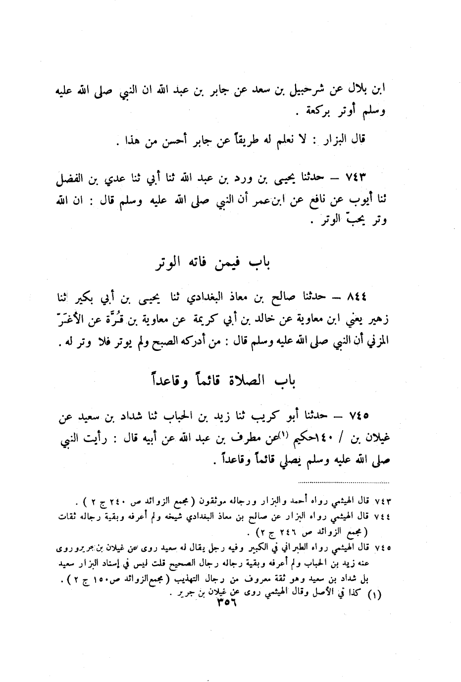 745 - حَدَّثَنَا أَبُو كُرَيْبٍ، ثنا زَيْدُ بْنُ الْحُبَابِ، ثنا شَدَّادُ بْنُ سَعِيدٍ، عَنْ غَيْلانَ بْنِ حَكِيمٍ، عَنْ مُطَرِّفِ بْنِ عَبْدِ اللَّهِ، عَنْ أَبِيهِ، قَالَ: رَأَيْتُ النَّبِيَّ صَلَّى اللَّهُ عَلَيْهِ وَسَلَّمَ «يُصَلِّي قَائِمًا وَقَاعِدًا» .