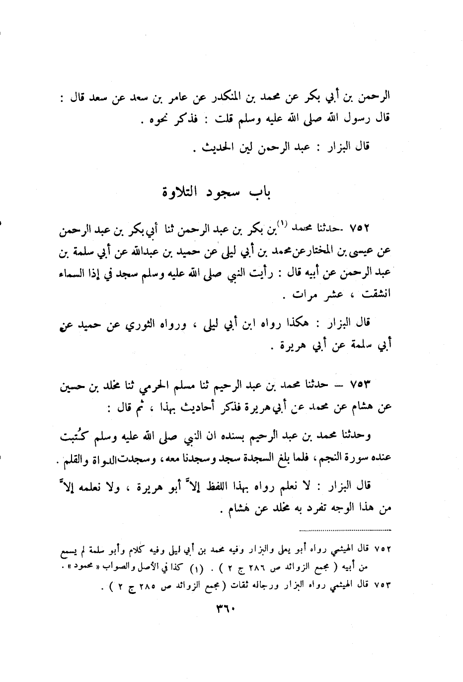 753 - حَدَّثَنَا مُحَمَّدُ بْنُ عَبْدِ الرَّحِيمِ، ثنا مُسْلِمٌ الْحَرَمِيُّ، ثنا مَخْلَدُ بْنُ حُسَيْنٍ، عَنْ هِشَامٍ، عَنْ مُحَمَّدٍ، عَنْ أَبِي هُرَيْرَةَ، فَذَكَرَ أَحَادِيثَ بِهَذَا، ثُمَّ قَالَ: وَحَدَّثَنَا مُحَمَّدُ بْنُ عَبْدِ الرَّحِيمِ بِسَنَدِهِ أَنَّ النَّبِيَّ صَلَّى اللَّهُ عَلَيْهِ وَسَلَّمَ كَتَبْتُ عِنْدَهُ سُورَةَ النَّجْمِ، فَلَمَّا بَلَغَ السَّجْدَةَ سَجَدَ وَسَجَدْنَا مَعَهُ، وَسَجَدَتِ الدَّوَاةُ وَالْقَلَمُ.