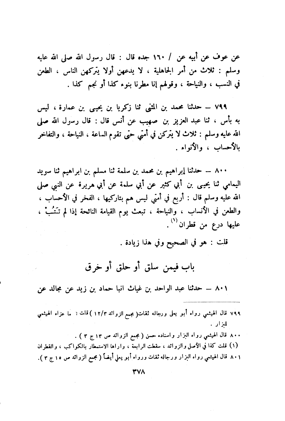 801 - حَدَّثَنَا عَبْدُ الْوَاحِدِ بْنُ غِيَاثٍ، أنبا حَمَّادُ بْنُ زَيْدٍ، عَنْ مُجَالِدٍ، عَنِ