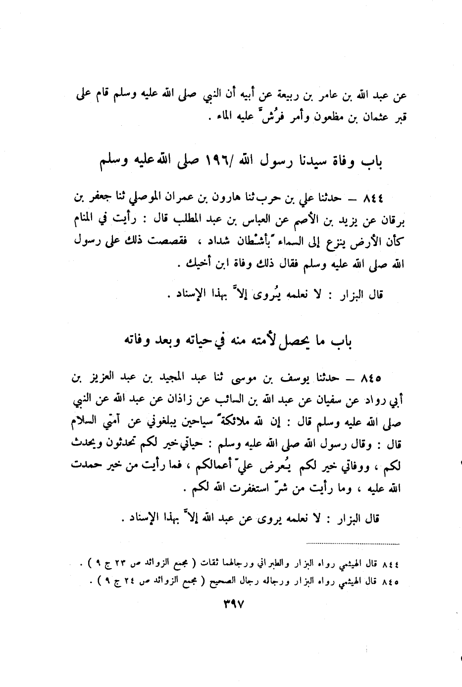 قَالَ: وَقَالَ رَسُولُ اللَّهِ صَلَّى اللَّهُ عَلَيْهِ وَسَلَّمَ: «حَيَاتِي خَيْرٌ لَكُمْ تُحَدِّثُونَ وَيُحَدَّثُ لَكُمْ، وَوَفَاتِي خَيْرٌ لَكُمْ يُعْرَضُ عَلَيَّ أَعْمَالُكُمْ، فَمَا رَأَيْتُ مِنْ خَيْرٍ حَمِدْتُ اللَّهَ عَلَيْهِ، وَمَا رَأَيْتُ مِنْ شَرٍّ اسْتَغْفَرْتُ اللَّهَ لَكُمْ» .