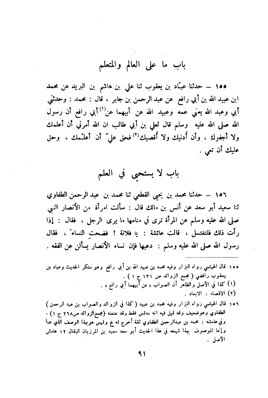 155 - حَدَّثَنَا عَبَّادُ بْنُ يَعْقُوبَ، ثنا عَلِيُّ بْنُ هَاشِمِ بْنِ الْبَرِيدِ، عَنْ مُحَمَّدِ بْنِ عُبَيْدِ اللَّهِ بْنِ أَبِي رَافِعٍ، عَنْ عَبْدِ الرَّحْمَنِ بْنِ جَابِرٍ، قَالَ مُحَمَّدٌ: وَحَدَّثَنِي أَبِي وَعَبْدُ اللَّهِ يَعْنِي عَمَّهُ وَعُبَيْدُ اللَّهِ، عَنْ أَبِيهِمَا، عَنْ أَبِي رَافِعٍ، أَنَّ رَسُولَ اللَّهِ صَلَّى اللَّهُ عَلَيْهِ وَسَلَّمَ قَالَ لِعَلِيِّ بْنِ أَبِي طَالِبٍ: «إِنَّ اللَّهَ أَمَرَنِي أَنْ أُعَلِّمَكَ وَلا أَجْفُوَكَ، وَأَنْ أُدْنِيَكَ وَلا أُقْصِيَكَ، فَحَقٌّ عَلَيَّ أَنْ أُعَلِّمَكَ، وَحَقٌّ عَلَيْكَ أَنْ تَعِيَ» .