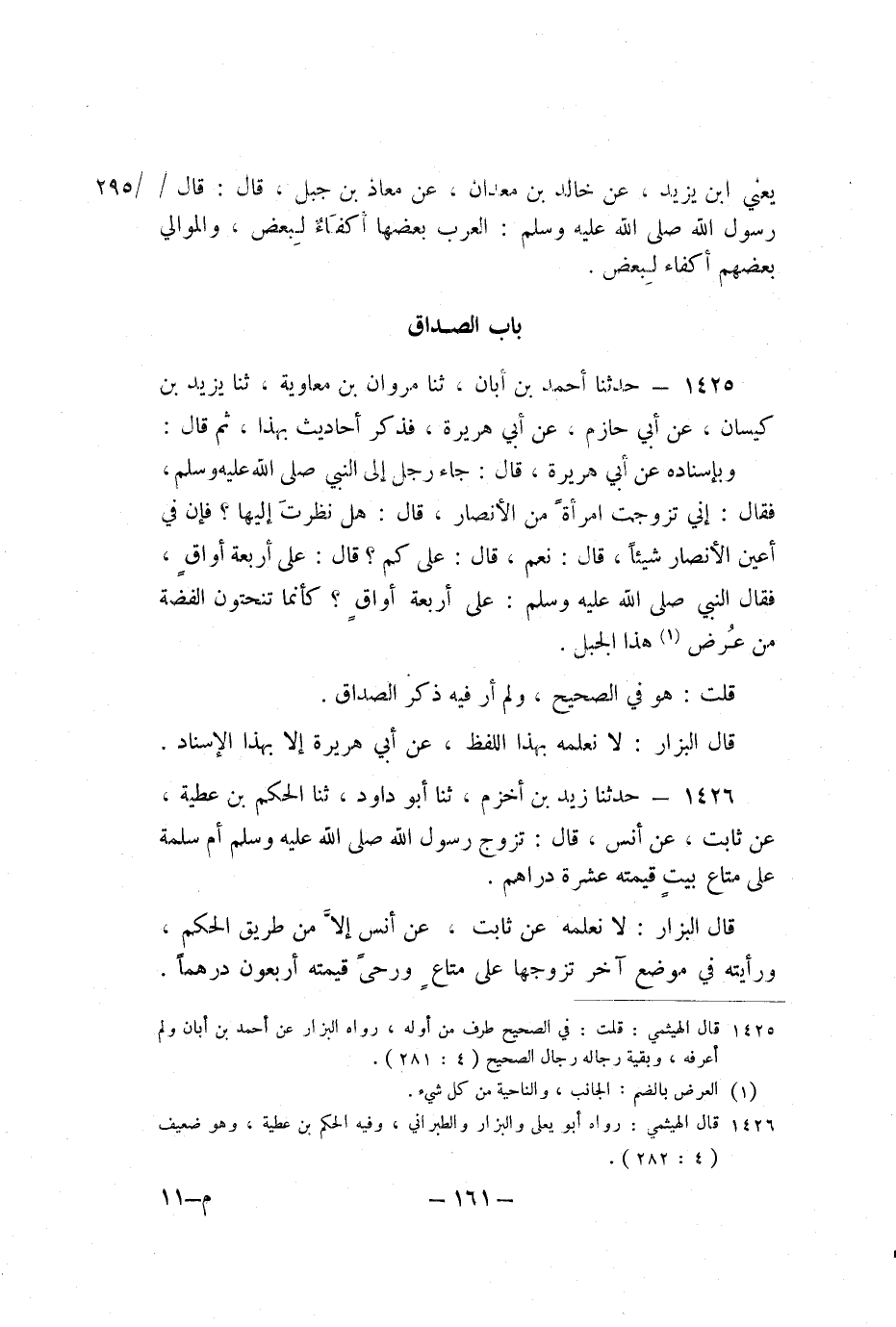 1425 - حَدَّثَنَا أَحْمَدُ بْنُ أَبَانٍ، ثنا مَرْوَانُ بْنُ مُعَاوِيَةَ، ثنا يَزِيدُ بْنُ كَيْسَانَ، عَنْ أَبِي حَازِمٍ، عَنْ أَبِي هُرَيْرَةَ، فَذَكَرَ أَحَادِيثَ بِهَذَا، ثُمَّ قَالَ: وَبِإِسْنَادِهِ عَنْ أَبِي هُرَيْرَةَ، قَالَ: جَاءَ رَجُلٌ إِلَى النَّبِيِّ صَلَّى اللَّهُ عَلَيْهِ وَسَلَّمَ، فَقَالَ: إِنِّي تَزَوَّجْتُ امْرَأَةً مِنَ الأَنْصَارِ، قَالَ: «هَلْ نَظَرْتَ إِلَيْهَا؟ فَإِنَّ فِي أَعْيُنِ الأَنْصَارِ شَيْئًا» ، قَالَ: نَعَمْ، قَالَ: «عَلَى كَمْ؟» قَالَ: عَلَى أَرْبَعَةِ أَوَاقٍ، فَقَالَ النَّبِيُّ صَلَّى اللَّهُ عَلَيْهِ وَسَلَّمَ: «عَلَى أَرْبَعَةِ أَوَاقٍ؟ كَأَنَّمَا تَنْحِتُونَ الْفِضَّةَ مِنْ عُرْضِ هَذَا الْجَبَلِ» .