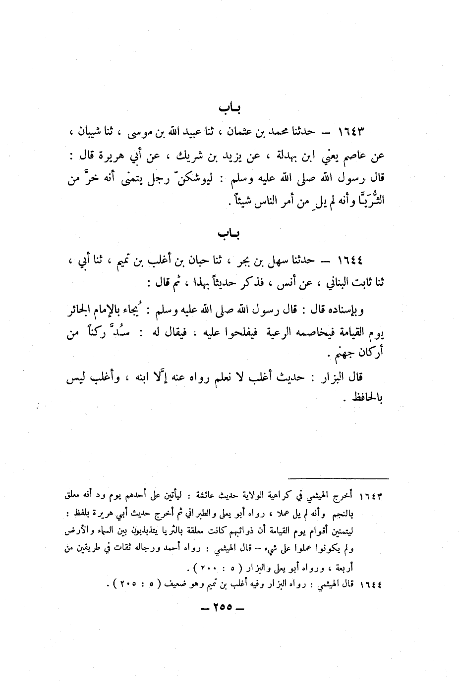 1644 - حَدَّثَنَا سَهْلُ بْنُ بَحْرٍ، ثنا حِبَّانُ بْنُ أَغْلَبَ بْنِ تَمِيمٍ، ثنا أَبِي، ثنا ثَابِتٌ الْبُنَانِيُّ، عَنْ أنَسٍ، فَذَكَرَ حَدِيثًا بِهَذَا، ثُمَّ قَالَ: وَبِإِسْنَادِهِ قَالَ: قَالَ رَسُولُ اللَّهِ صَلَّى اللَّهُ عَلَيْهِ وَسَلَّمَ: " يُجَاءُ بِالإِمَامِ الْجَائِرِ يَوْمَ الْقِيَامَةِ فَيُخَاصِمُهُ الرَّعِيَّةُ فَيُفْلِحُوا عَلَيْهِ، فَيُقَالُ لَهُ: سُدَّ رُكْنًا مِنْ أَرْكَانِ جَهَنَّمَ ".