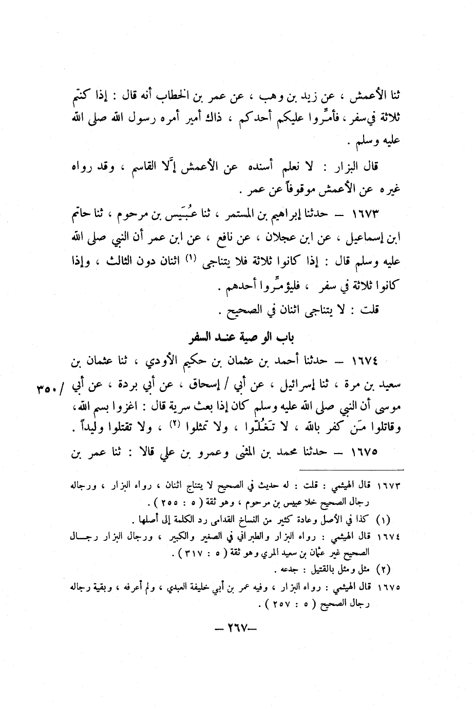 ثنا الأَعْمَشُ، عَنْ زَيْدِ بْنِ وَهْبٍ، عَنْ عُمَرَ بْنِ الْخَطَّابِ، أَنَّهُ قَالَ: إِذَا كُنْتُمْ ثَلاثَةً فِي سَفَرٍ، فَأَمِّرُوا عَلَيْكُمْ أَحَدَكُمْ، ذَاكَ أَمِيرٌ أَمَّرَهُ رَسُولُ اللَّهِ صَلَّى اللَّهُ عَلَيْهِ وَسَلَّمَ.