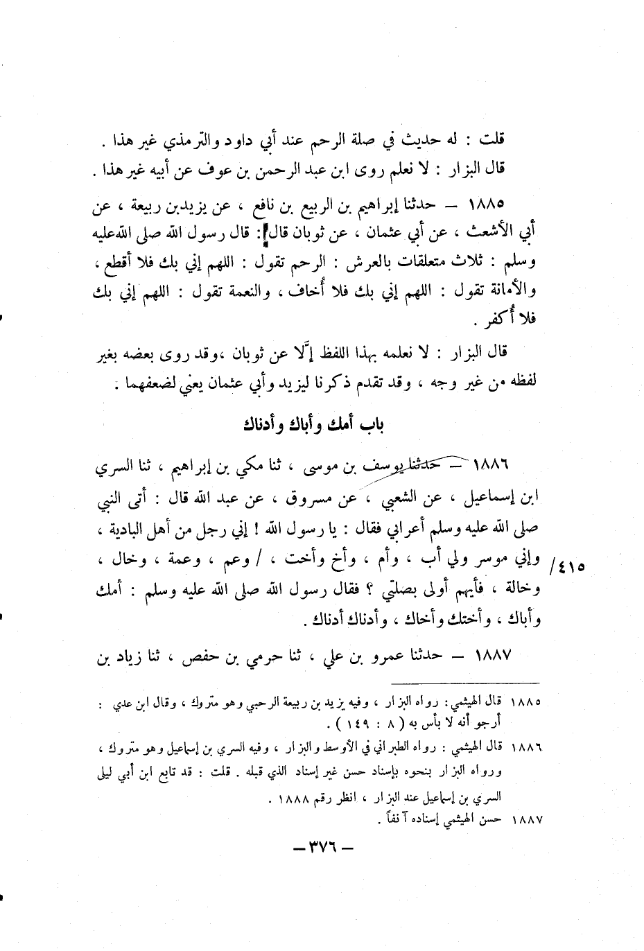 قُلْتُ: لَهُ حَدِيثٌ فِي صِلَةِ الرَّحِمِ عِنْدَ أَبِي دَاوُدَ وَالتِّرْمِذِيِّ غَيْرَ هَذَا.