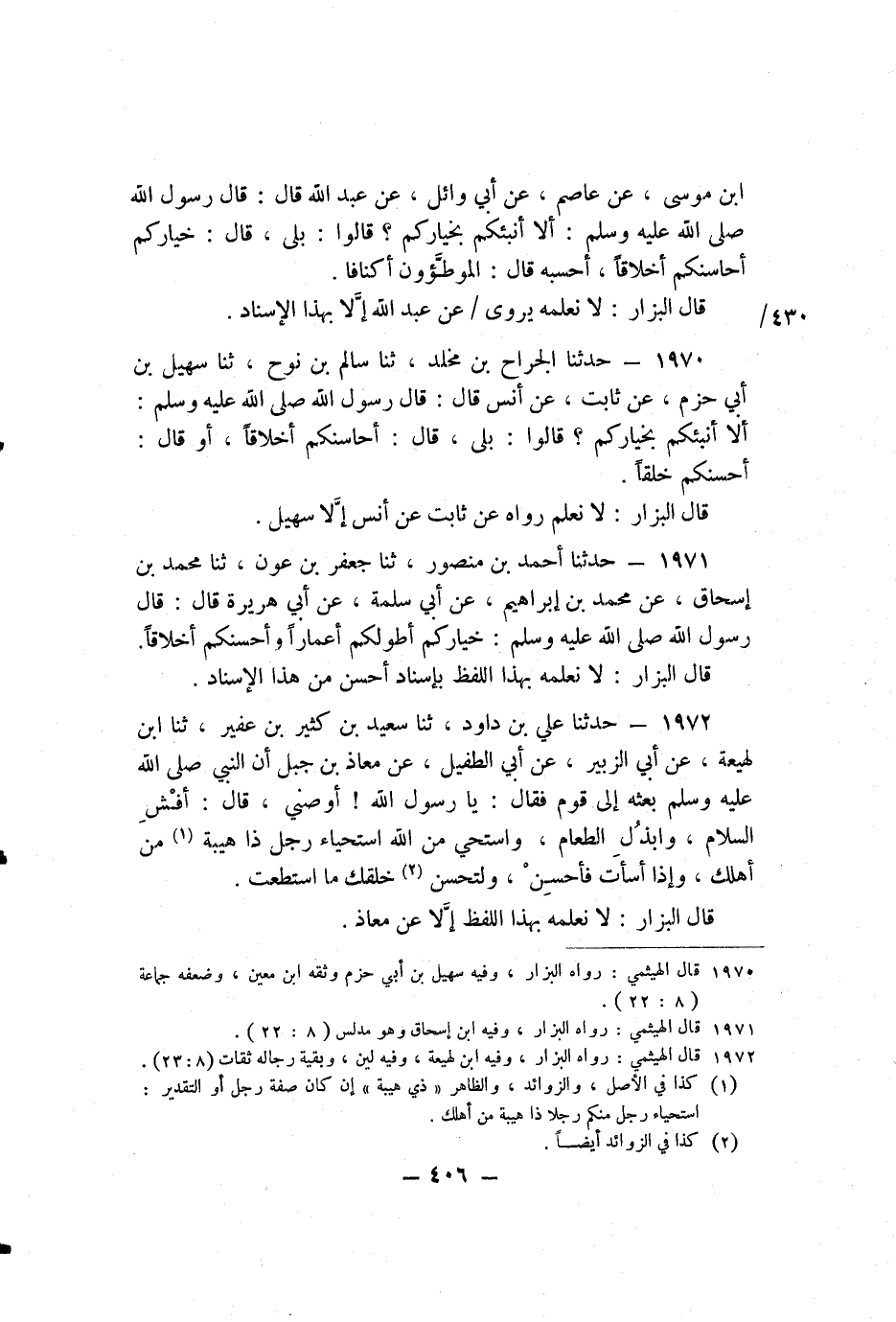 1971 - حَدَّثَنَا أَحْمَدُ بْنُ مَنْصُورٍ، ثنا جَعْفَرُ بْنُ عَوْنٍ، ثنا مُحَمَّدُ بْنُ إِسْحَاقَ، عَنْ مُحَمَّدِ بْنِ إِبْرَاهِيمَ، عَنْ أَبِي سَلَمَةَ، عَنْ أَبِي هُرَيْرَةَ، قَالَ: قَالَ رَسُولُ اللَّهِ صَلَّى اللَّهُ عَلَيْهِ وَسَلَّمَ: «خِيَارُكُمْ أَطْوَلُكُمْ أَعْمَارًا وَأَحْسَنُكُمْ أَخْلاقًا» .