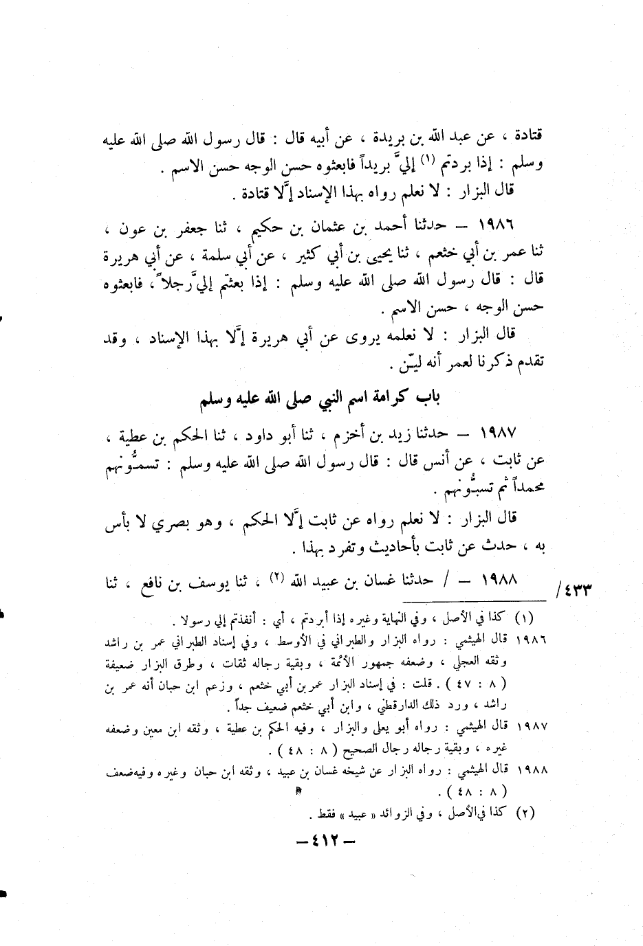 1988 - حَدَّثَنَا غَسَّانُ بْنُ عُبَيْدِ اللَّهِ، ثنا يُوسُفُ بْنُ نَافِعٍ، ثنا