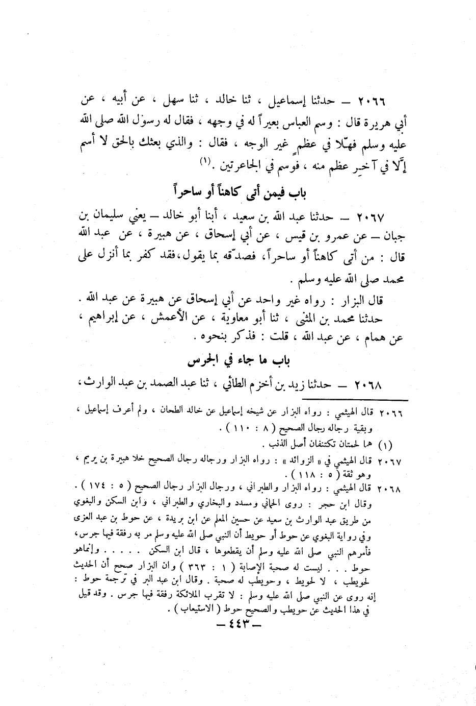 2067 - حَدَّثَنَا عَبْدُ اللَّهِ بْنُ سَعِيدٍ، أنبا أَبُو خَالِدٍ، يَعْنِي: سُلَيْمَانَ بْنَ حَيَّانَ، عَنْ عَمْرِو بْنِ قَيْسٍ، عَنْ أَبِي إِسْحَاقَ، عَنْ هُبَيْرَةَ، عَنْ عَبْدِ اللَّهِ، قَالَ: مَنْ أَتَى كَاهِنًا أَوْ سَاحِرًا، فَصَدَّقَهُ بِمَا يَقُولُ، فَقَدْ كَفَرَ بِمَا أَنْزَلَ عَلَى مُحَمَّدٍ صَلَّى اللَّهُ عَلَيْهِ وَسَلَّمَ.