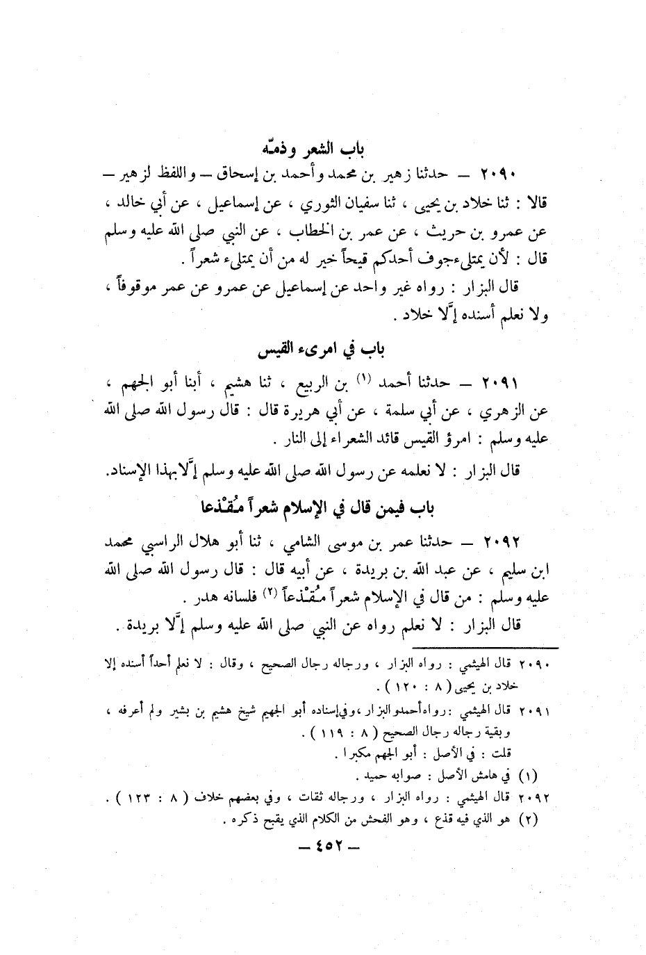 2091 - حَدَّثَنَا حُمَيْدُ بْنُ الرَّبِيعِ، ثنا هُشَيْمٌ، أبنا أَبُو الْجَهْمِ، عَنِ الزُّهْرِيِّ، عَنْ أَبِي سَلَمَةَ، عَنْ أَبِي هُرَيْرَةَ، قَالَ: قَالَ رَسُولُ اللَّهِ صَلَّى اللَّهُ عَلَيْهِ وَسَلَّمَ: «امْرِؤُ الْقَيْسِ قَائِدُ الشُّعَرَاءِ إِلَى النَّارِ» .