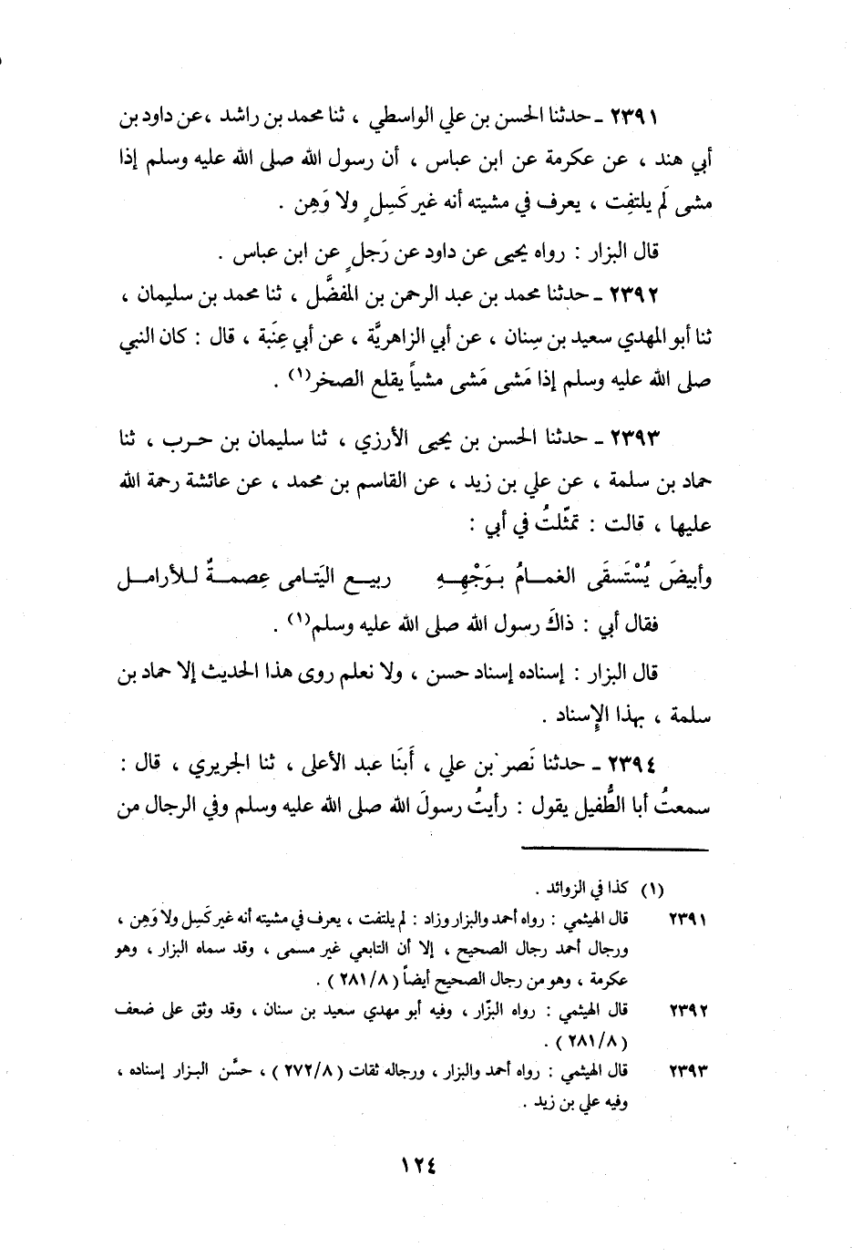 2391 - حَدَّثَنَا الْحَسَنُ بْنُ عَلِيٍّ الْوَاسِطِيُّ، ثنا مُحَمَّدُ بْنُ رَاشِدٍ، عَنْ دَاوُدَ بْنِ أَبِي هِنْدٍ، عَنْ عِكْرِمَةَ , عَنِ ابْنِ عَبَّاسٍ، أَنَّ رَسُولَ اللَّهِ صَلَّى اللَّهُ عَلَيْهِ وَسَلَّمَ إِذَا مَشَى لَمْ يَلْتَفِتْ، يُعْرَفُ فِي مِشْيَتِهِ أَنَّهُ غَيْرُ كَسِلٍ وَلا وَهِنٍ.