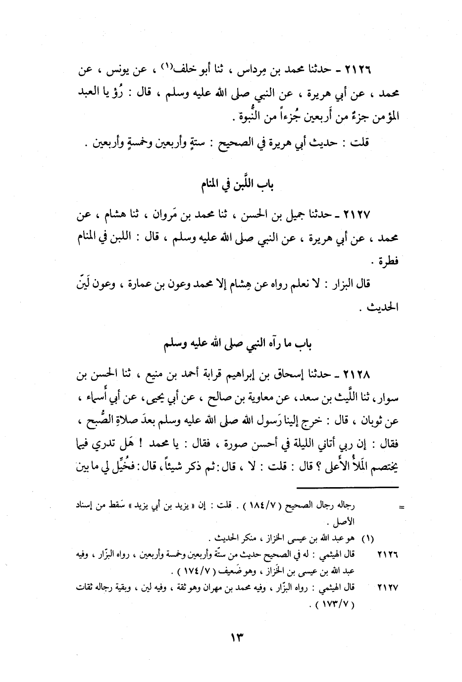 2127 - حَدَّثَنَا جَمِيلُ بْن الْحَسَنِ، ثنا مُحَمَّدُ بْنُ مَرْوَانَ، ثنا هِشَامٌ، عَنْ مُحَمَّدٍ، عَنْ أَبِي هُرَيْرَةَ، عَنِ النَّبِيِّ صَلَّى اللَّهُ عَلَيْهِ وَسَلَّمَ، قَالَ: «اللَّبَنُ فِي الْمَنَامِ فِطْرَةٌ» .