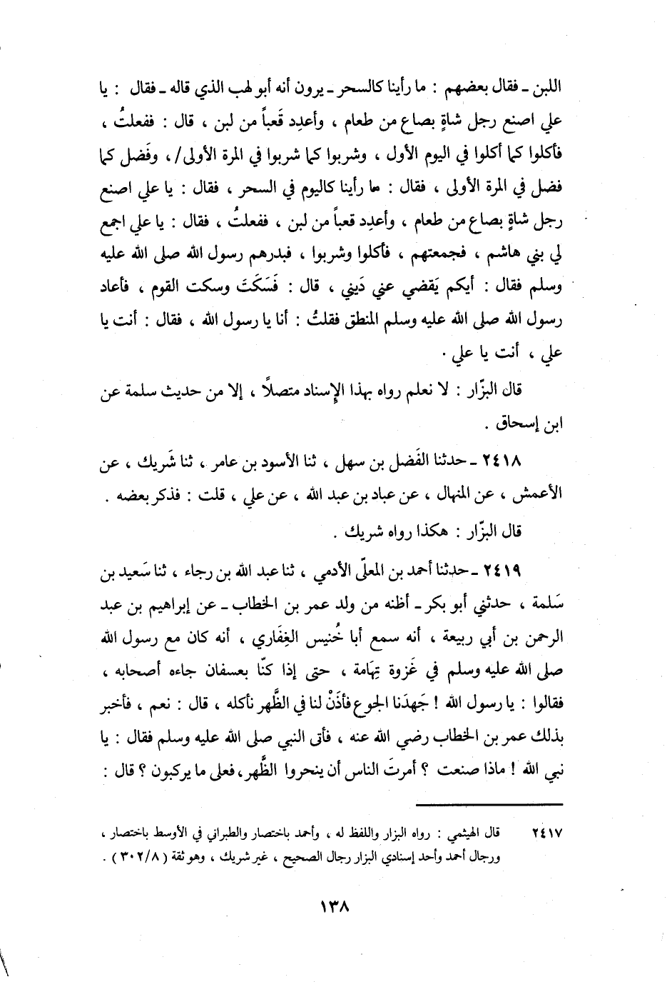2418 - حَدَّثَنَا الْفَضْلُ بْنُ سَهْلٍ، ثنا الأَسْوَدُ بْنُ عَامِرٍ، ثنا شَرِيكٌ، عَنِ الأَعْمَشِ، عَنِ الْمِنْهَالِ، عَنْ عَبَّادِ بْنِ عَبْدِ اللَّهِ، عَنْ عَلِيٍّ، قُلْتُ: فَذَكَرَ بَعْضَهُ.