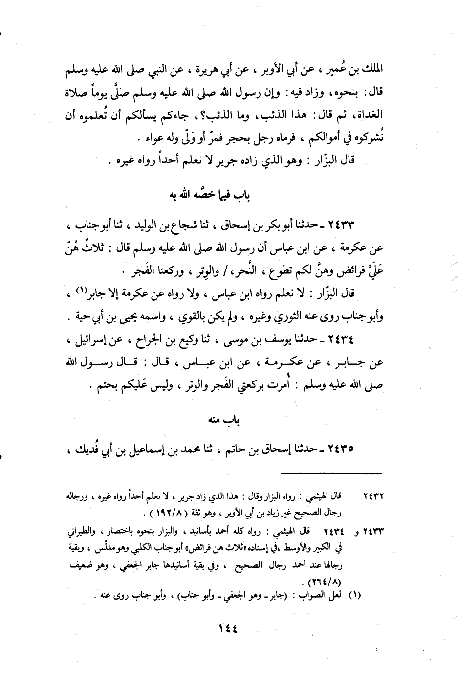 كتاب كشف الأستار عن زوائد البزار (اسم الجزء: 3)