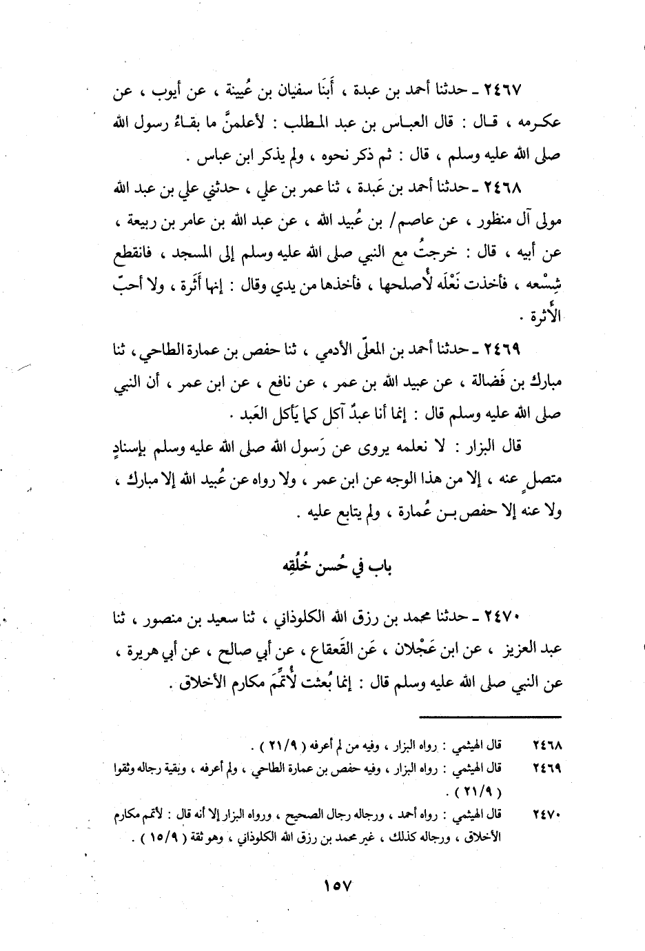 2470 - حَدَّثَنَا مُحَمَّدُ بْنُ رِزْقِ اللَّهِ الْكَلْوَذَانِيُّ، ثنا سَعِيدُ بْنُ مَنْصُورٍ، ثنا عَبْدُ الْعَزِيزِ، عَنِ ابْنِ عَجْلانَ، عَنِ الْقَعْقَاعِ، عَنْ أَبِي صَالِحٍ، عَنْ أَبِي هُرَيْرَةَ، عَنِ النَّبِيِّ صَلَّى اللَّهُ عَلَيْهِ وَسَلَّمَ قَالَ: «إِنَّمَا بُعِثْتُ لأُتَمِّمَ مَكَارِمَ الأَخْلاقِ» .
