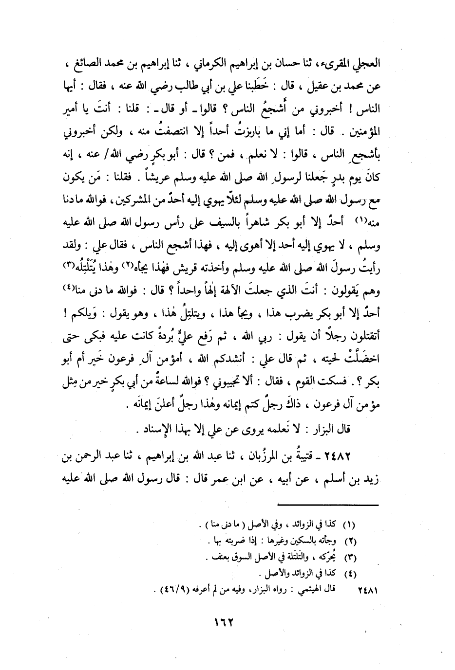 قَالَ الْبَزَّارُ: لا نَعْلَمُهُ يُرْوَى عَنْ عَلِيٍّ إِلا بِهَذَا الإِسْنَادِ.