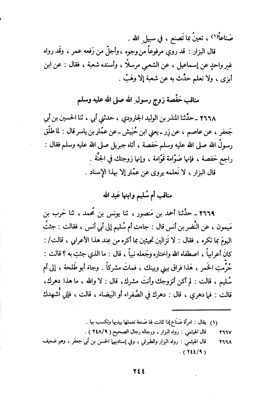 2668 - حَدَّثَنَا الْمُنْذِرُ بْنُ الْوَلِيدِ الْجَارُودِيُّ، حَدَّثَنِي أَبِي، ثنا الْحُسَيْنُ بْنُ أَبِي جَعْفَرٍ، عَنْ عَاصِمٍ، عَنْ زِرٍّ - يَعْنِي: ابْنَ حُبَيْشٍ - عَنْ عَمَّارِ بْنِ ياسِرٍ قَالَ: لَمَّا طَلَّقَ رَسُولُ اللَّهِ صَلَّى اللَّهُ عَلَيْهِ وَسَلَّمَ حَفْصَةَ، أَتَاهُ جِبْرِيلُ صَلَّى اللَّهُ عَلَيْهِ وَسَلَّمَ فَقَالَ: رَاجِعْ حَفْصَةَ، فَإِنَّهَا صَوَّامَةٌ قَوَّامَةٌ، وَإِنَّهَا زَوْجَتُكَ فِي الْجَنَّةِ.
