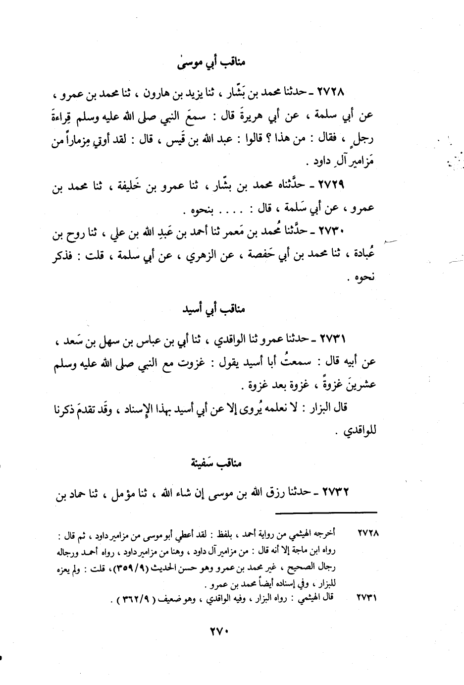 قَالَ الْبَزَّارُ: لا نَعْلَمُهُ يُرْوَى إِلا عَنْ أَبِي أُسَيْدٍ بِهَذَا الإِسْنَادِ، وَقَدْ تَقَدَّمَ ذِكْرُنَا لِلْوَاقِدِيِّ.