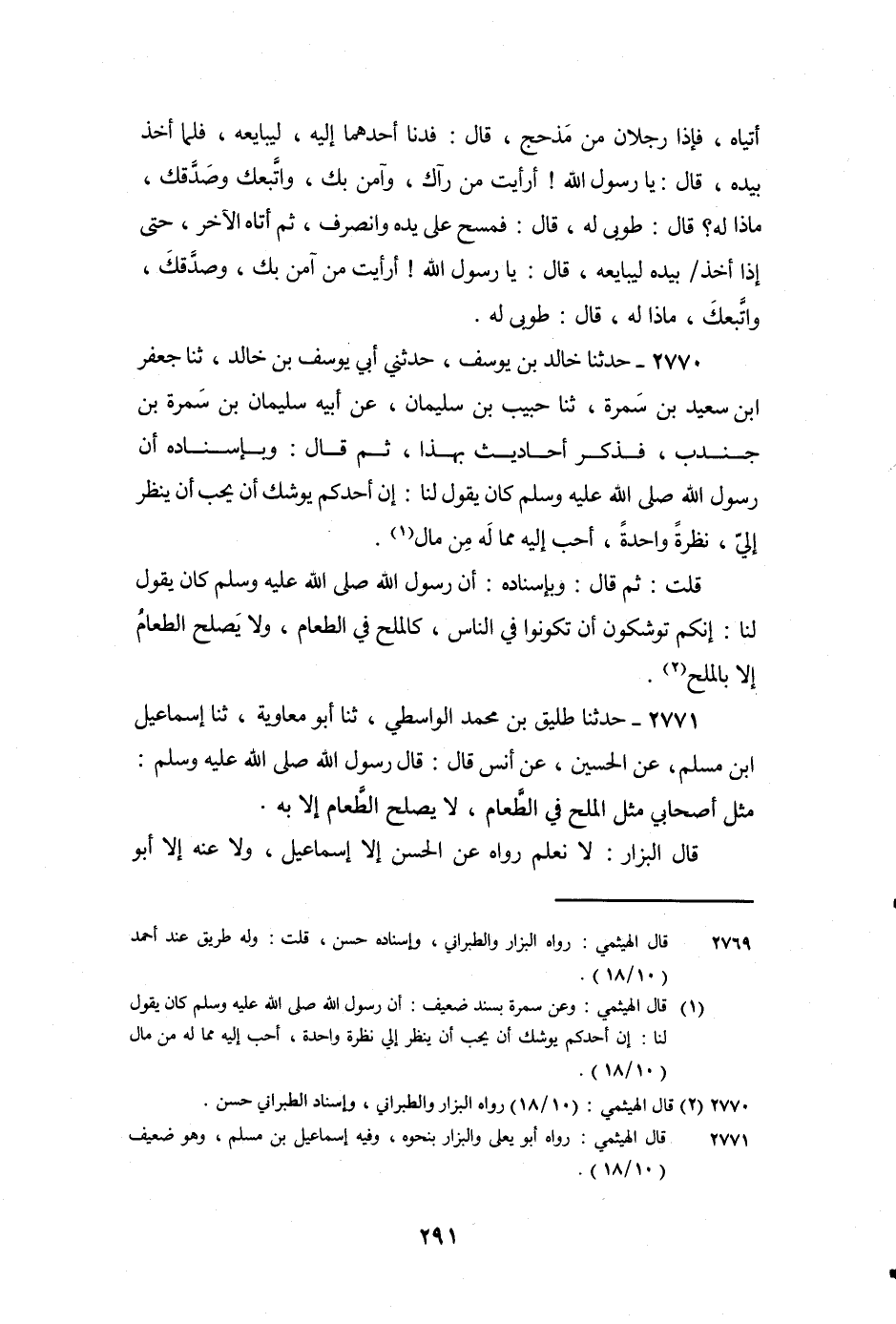 2771 - حَدَّثَنَا طُلَيْقُ بْنُ مُحَمَّدٍ الْوَاسِطِيُّ، ثنا أَبُو مُعَاوِيَةَ، ثنا إِسْمَاعِيلُ بْنُ مُسْلِمٍ، عَنِ الْحُسَيْنِ، عَنْ أَنَسٍ قَالَ: قَالَ رَسُولُ اللَّهِ صَلَّى اللَّهُ عَلَيْهِ وَسَلَّمَ: «مَثَلُ أَصْحَابِي مَثَلُ الْمِلْحِ فِي الطَّعَامِ، لا يَصْلُحُ الطَّعَامُ إِلا بِهِ» .