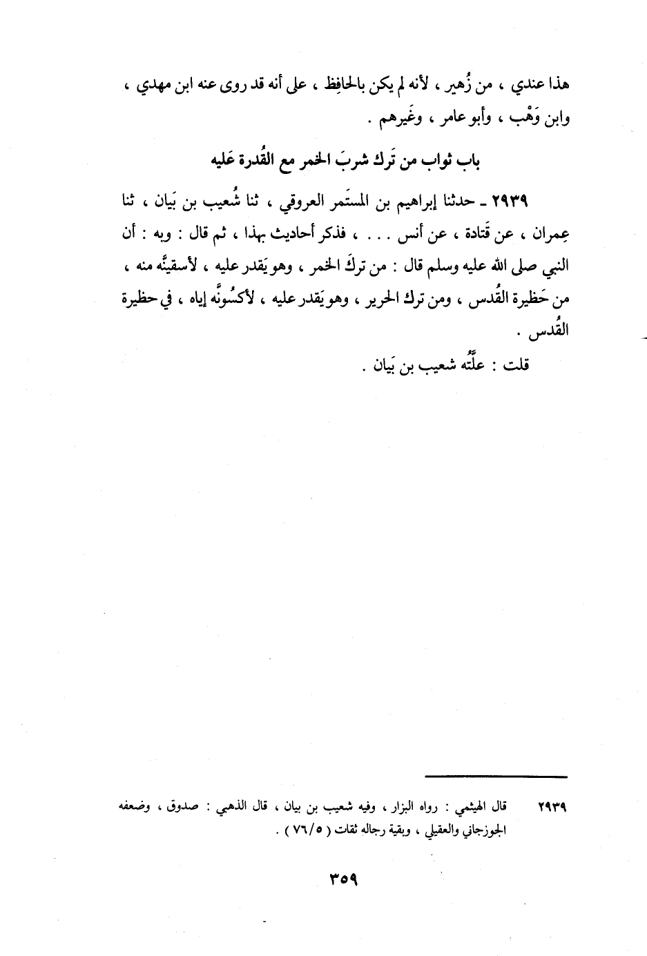 قُلْتُ: عِلَّتُهُ شُعَيْبُ بْنُ بَيَانٍ.