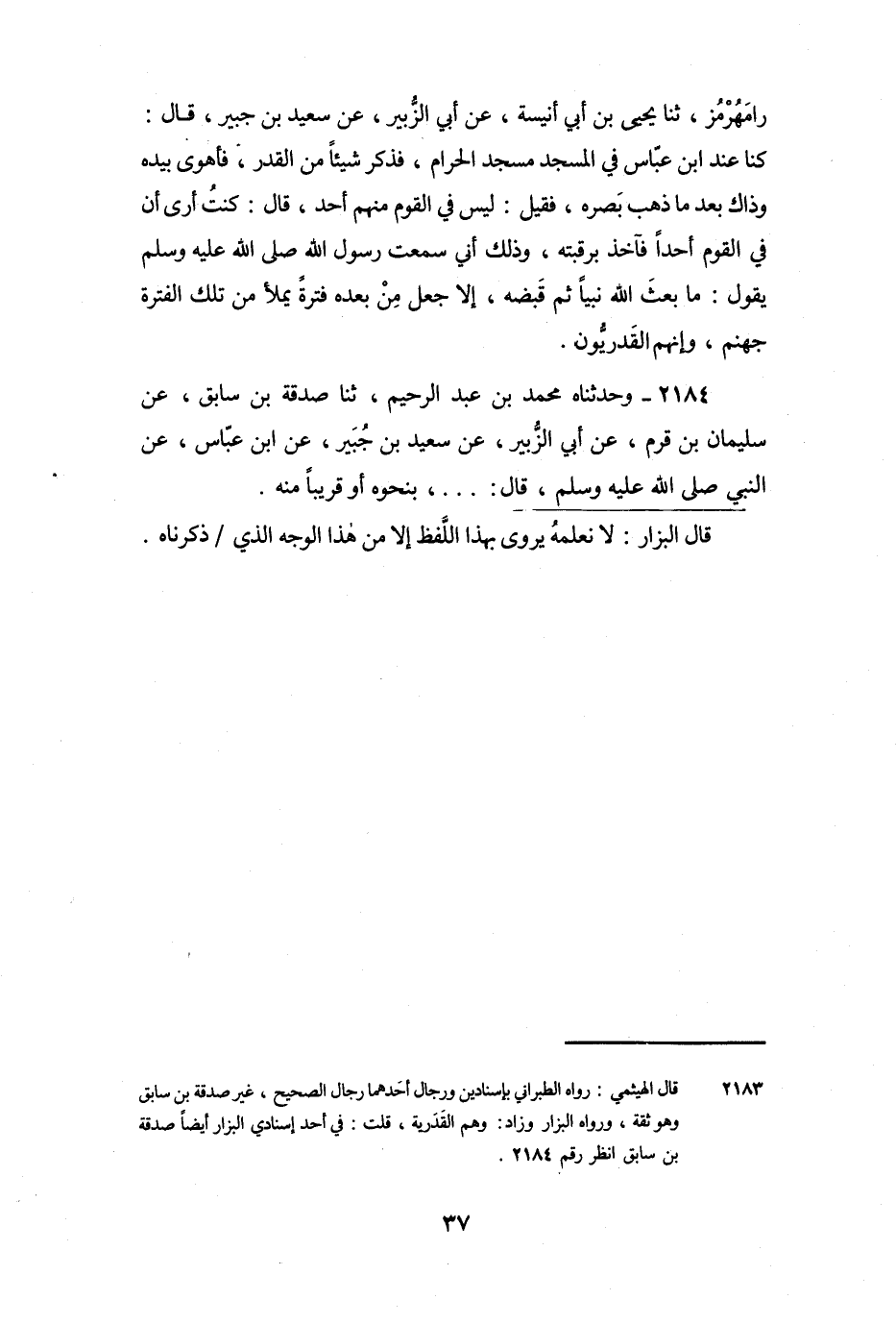 2184 - وَحَدَّثَنَاهُ مُحَمَّدُ بْنُ عَبْدِ الرَّحِيمِ، ثنا صَدَقَةُ بْنُ سَابِقٍ، عَنْ سُلَيْمَانَ بْنِ قَرْمٍ، عَنْ أَبِي الزُّبَيْرِ، عَنْ سَعِيدِ بْنِ جُبَيْرٍ، عَنِ ابْنِ عَبَّاسٍ، عَنِ النَّبِيِّ صَلَّى اللَّهُ عَلَيْهِ وَسَلَّمَ، قَالَ: ...