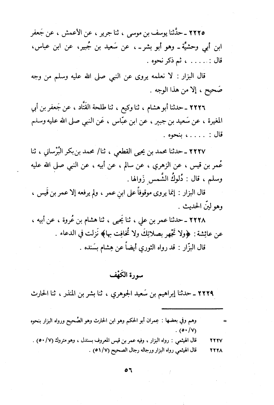 2225 - حَدَّثَنَا يُوسُفُ بْنُ مُوسَى، ثنا جَرِيرٌ، عَنِ الأَعْمَشِ، عَنْ جَعْفَرِ بْنِ أَبِي وَحْشِيَّةَ - وَهُوَ أَبُو بِشْرٍ -، عَنْ سَعِيدِ بْنِ جُبَيْرٍ، عَنِ ابْنِ عَبَّاسٍ، قَالَ: ...