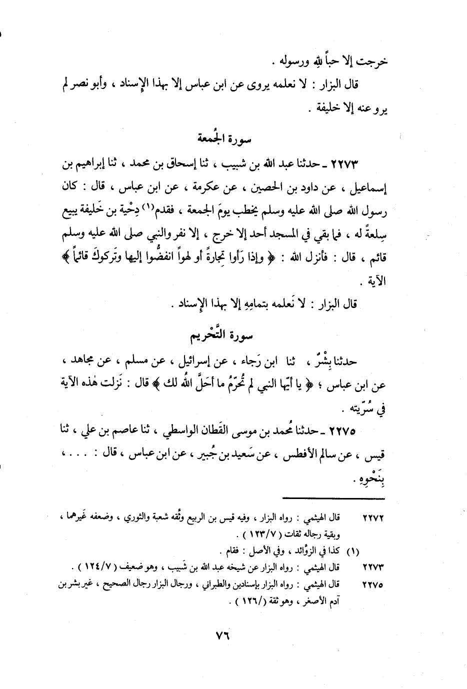 2275 - حَدَّثَنَا مُحَمَّدُ بْنُ مُوسَى الْقَطَّانُ الْوَاسِطِيُّ، ثنا عَاصِمُ بْنُ عَلِيٍّ، ثنا قَيْسٌ، عَنْ سَالِمٍ الأَفْطَسِ، عَنْ سَعِيدِ بْنِ جُبَيْرٍ، عَنِ ابْنِ عَبَّاسٍ، قَالَ: ...