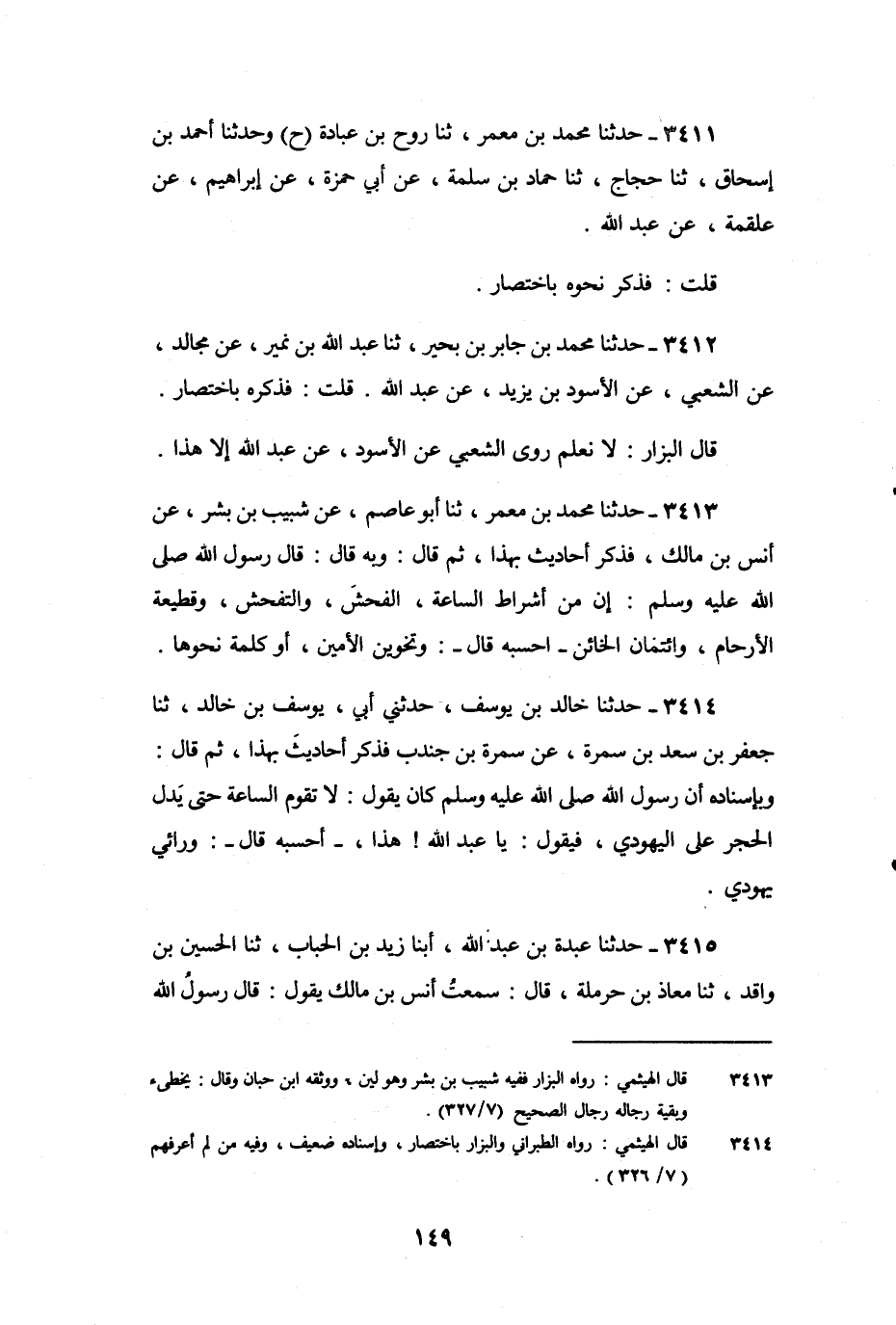 3411 - حَدَّثَنَا مُحَمَّدُ بْنُ مَعْمَرٍ، ثنا رَوْحُ بْنُ عُبَادَةَ (ح) ، وَحَدَّثَنَا أَحْمَدُ بْنُ إِسْحَاقَ، ثنا حَجَّاجٌ، ثنا حَمَّادُ بْنُ سَلَمَةَ، عَنْ أَبِي حَمْزَةَ، عَنْ إِبْرَاهِيمَ، عَنْ عَلْقَمَةَ، عَنْ عَبْدِ اللَّهِ.