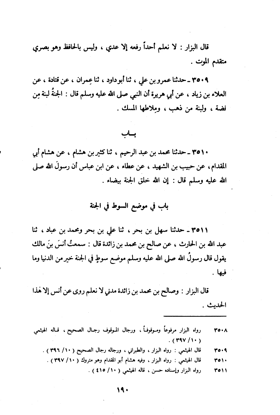 قَالَ الْبَزَّارُ: لا نَعْلَمُ أَحَدًا رَفَعَهُ إِلا عَدِيٌّ، وَلَيْسَ بِالْحَافِظِ، وَهُوَ بَصْرِيٌّ مُتَقَدِّمُ الْمَوْتِ