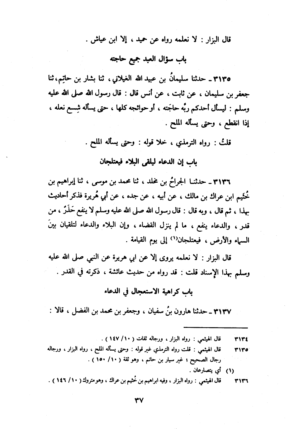 3135 - حَدَّثَنَا سُلَيْمَانُ بْنُ عُبَيْدِ اللَّهِ الْغَيْلانِيُّ، ثنا بَشَّارُ بْنُ حَاتِمٍ، ثنا جَعْفَرُ بْنُ سُلَيْمَانَ، عَنْ ثَابِتٍ، عَنْ أَنَسٍ، قَالَ: قَالَ رَسُولُ اللَّهِ صَلَّى اللَّهُ عَلَيْهِ وَسَلَّمَ: «لِيَسْأَلْ أَحَدُكُمْ رَبَّهُ حَاجَتَهُ، أَوْ حَوَائِجَهُ كُلَّهَا، حَتَّى يَسْأَلَهُ شِسْعَ نَعْلِهِ إِذَا انْقَطَعَ، وَحَتَّى يَسْأَلَهُ الْمِلْحَ» .