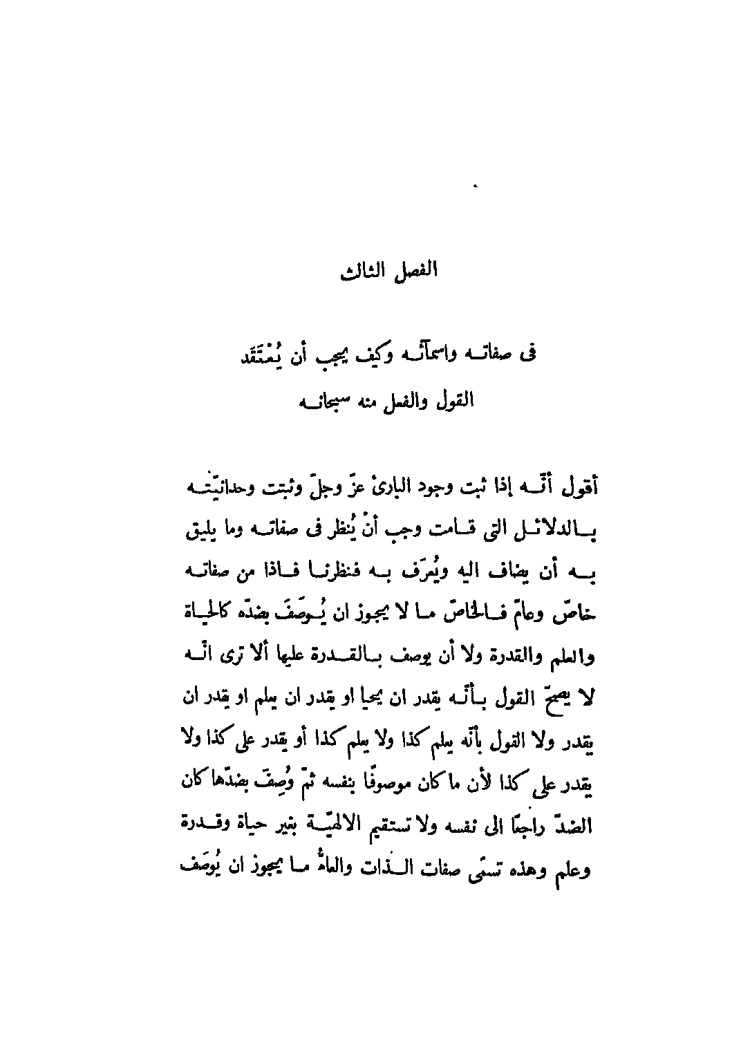 الفصل الثالث في صفاته وأسمائه وكيف يجب أن يعتقد القول والفعل منه سبحانه