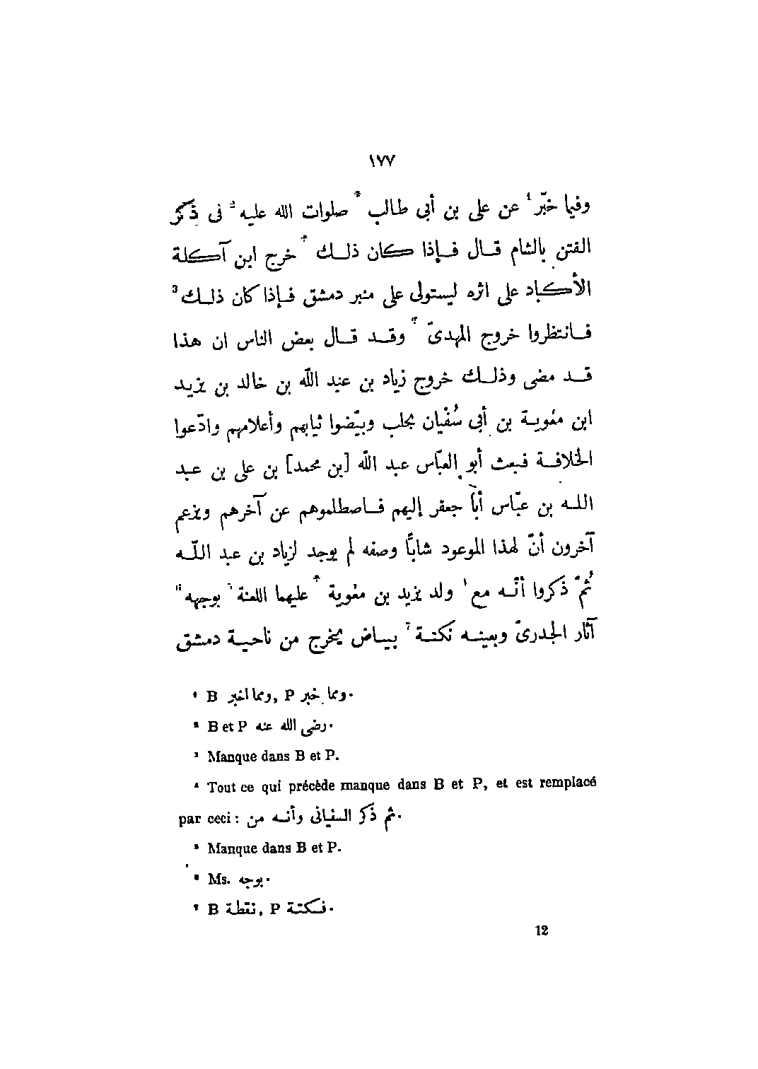 وفيما خبر [1] عن علي بن أبي طالب صلوات الله عليه [2] في ذكر الفتن بالشام قال فإذا كان ذلك خرج ابن آكلة الأكباد على اثره ليستولي على منبر دمشق فإذا كان ذلك [3] فانتظروا خروج المهدي وقد قال بعض الناس أن هذا قد مضى وذلك خروج زياد بن عبد الله بن خالد بن يزيد ابن معاوية بن أبي سفيان بحلب وبيضوا ثيابهم وأعلامهم وادّعوا الخلافة فبعث أبو العباس عبد الله [بن محمد] بن علي بن عبد الله بن عبّاس أبا جعفر إليهم فاصطلموهم عن آخرهم ويزعم آخرون أن لهذا الموعود شاباً وصفه لم يوجد لزياد بن عبد الله ثم ذكروا أنه مع [4] ولد يزيد بن معاوية عليهما اللعنة [5] بوجهه [6] آثار الجدرىّ وبعينه نكتة [7] بياض يخرج من ناحية دمشق