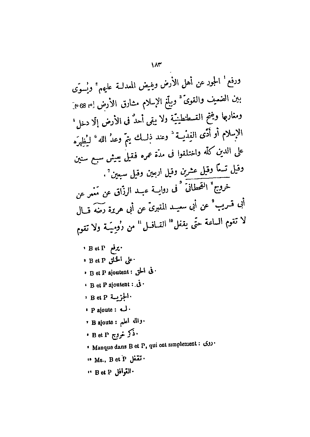في رواية عبد الرزاق عن معمر عن أبي قريب [9] عن أبي سعيد المقبري عن أبي هريرة رضي الله عنه قال لا تقوم الساعة حتى يقفل [10] القافل [11] من رومية ولا تقوم