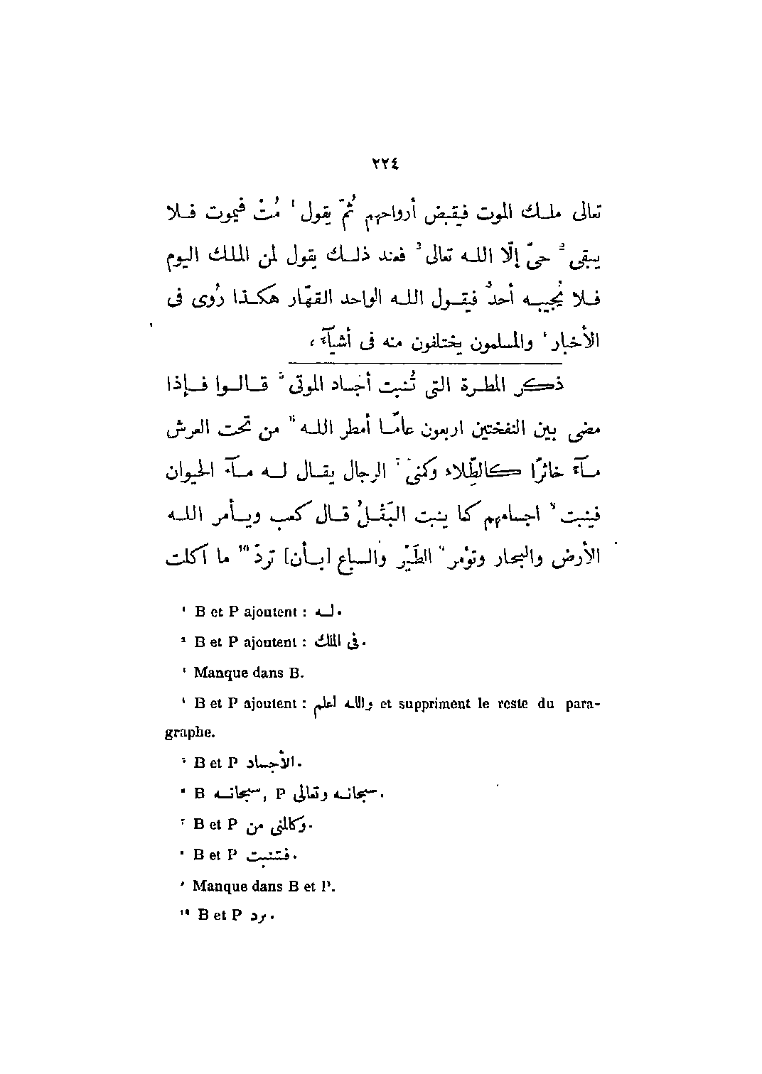 تعالى ملك الموت فيقبض أرواحهم ثم يقول [1] مت فيموت فلا يبقى [2] حي إلا الله تعالى [3] فعند ذلك يقول لِمَنِ الْمُلْكُ الْيَوْمَ 40: 16 فلا يجيبه أحد فيقول لِلَّهِ الْواحِدِ الْقَهَّارِ 40: 16 هكذا روى في الأخبار [4] والمسلمون يختلفون منه في أشياء،