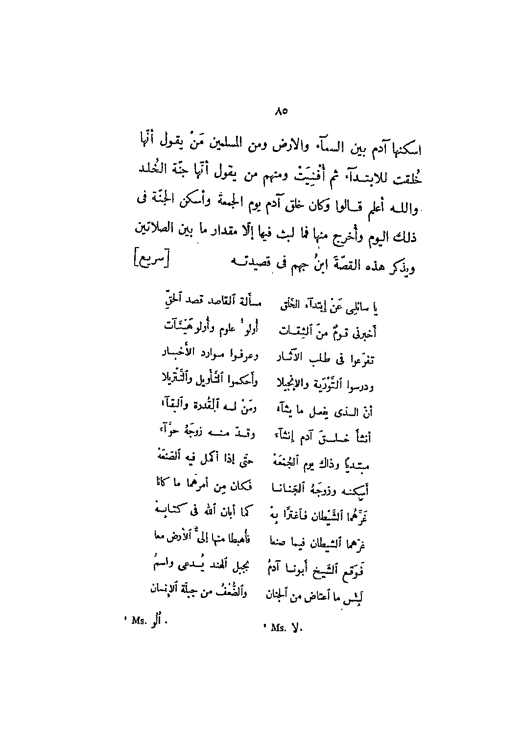 فوقع الشيخ أبونا آدم ... بجبل الهند يدعى واسم