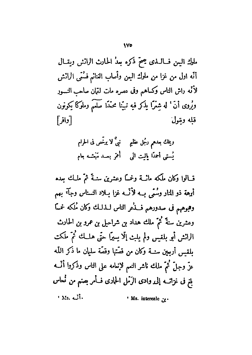ملوك اليمن فالذي يصح ذكره بعد الحارث الرائش ويقال أنه أول من غزا من ملوك اليمن وأصاب الغنائم فسمي الرائش لأنه راش الناس وكساهم وفي عصره مات لقمان صاحب النسور ويروى أن [1] له شعرا يذكر فيه نبيّنا محمّدا صلى الله عليه وسلم وملوكا يكونون قبله ويقول [وافر]