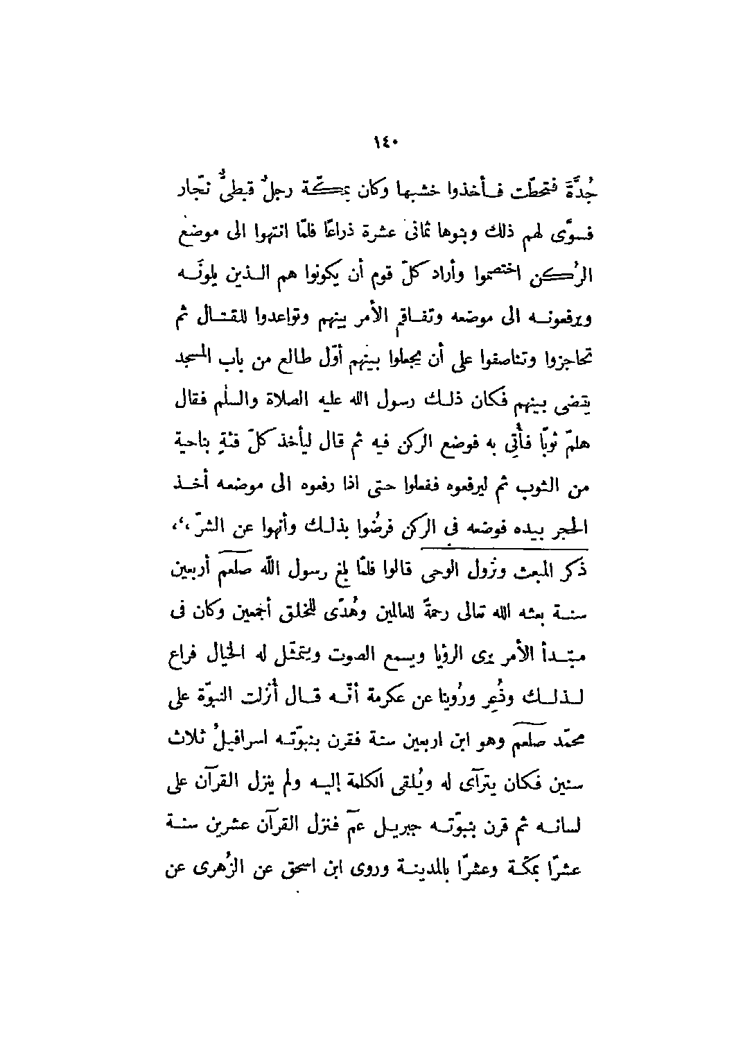 جدّة فتحطّمت فأخذوا خشبها وكان بمكة رجل قبطي نجار فسوّى لهم ذلك وبنوها ثماني عشرة ذراعا فلما انتهوا إلى موضع الركن اختصموا وأراد كل قوم أن يكونوا هم الذين يلونه ويرفعونه الى موضعه وتفاقم الأمر بينهم وتواعدوا للقتال ثم تحاجزوا وتناصفوا على أن يجعلوا بينهم أول طالع من باب المسجد يقضي بينهم فكان ذلك رسول الله عليه الصلاة والسلم فقال هلم ثوبا فأتى به فوضع الركن فيه ثم قال ليأخذ كل فئة بناحية من الثوب ثم ليرفعوه ففعلوا حتى إذا رفعوه إلى موضعه أخذ الحجر بيده فوضعه في الركن فرضوا بذلك وأنهوا عن الشر،،،