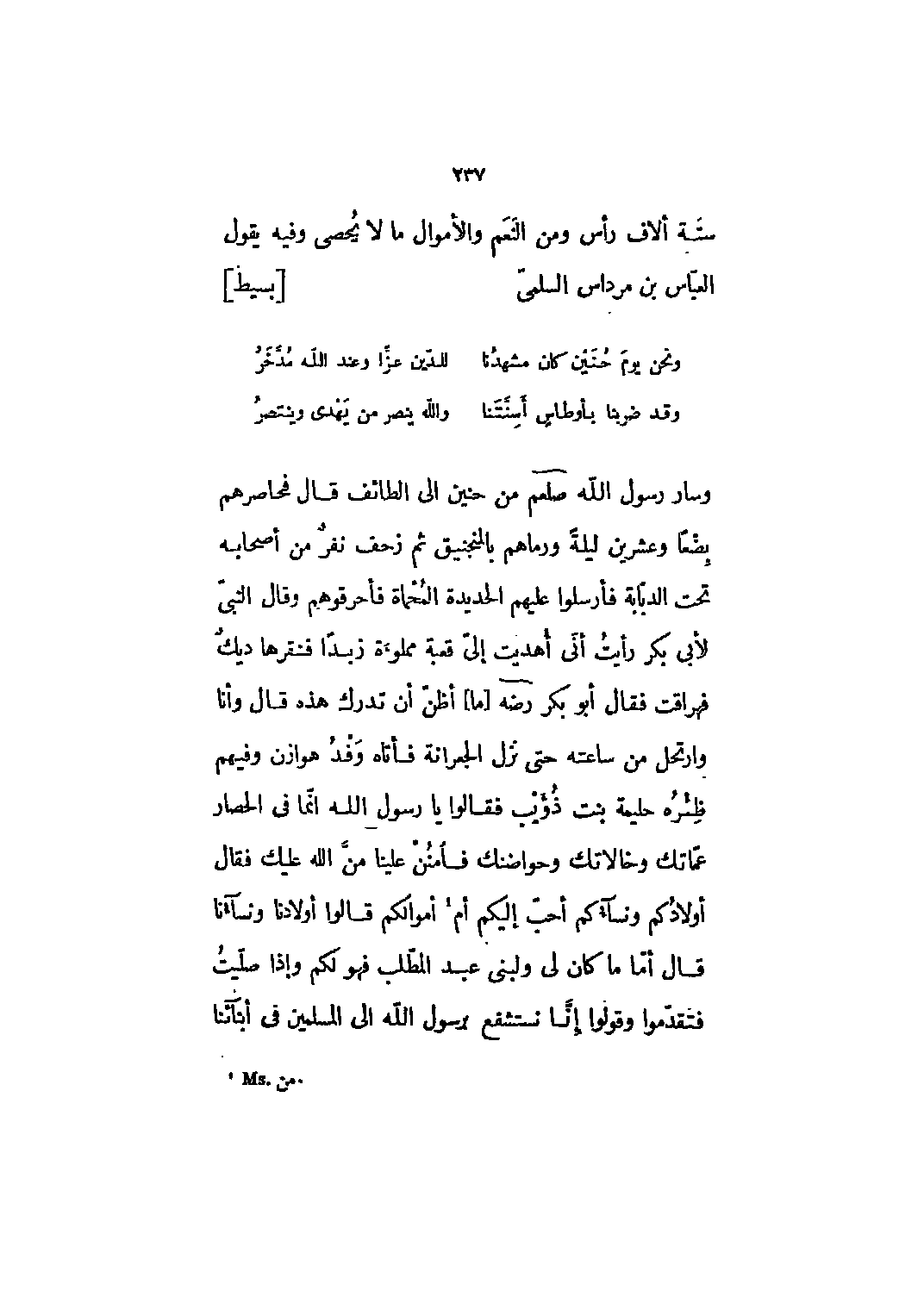 ستة آلاف رأس ومن النعم والأموال ما لا يحصى وفيه يقول العباس بن مرداس السلمىّ [بسيط]