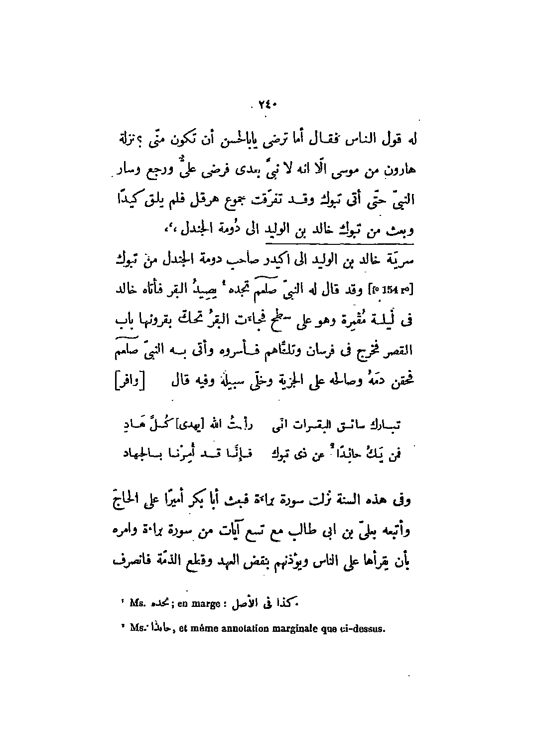 صاحب دومة الجندل من تبوك [F؟ 154 r؟] وقد قال له النبي صلى الله عليه وسلم تجده [1] يصيد البقر فاتاه خالد في ليلة مقمرة وهو على سطح فجاءت البقر تحك بقرونها باب القصر فخرج في فرسان وتلقاهم فأسروه وأتى به النبي صلى الله عليه وسلم فحقن دمه وصالحه على الجزية وخلى سبيله وفيه قال [وافر]
