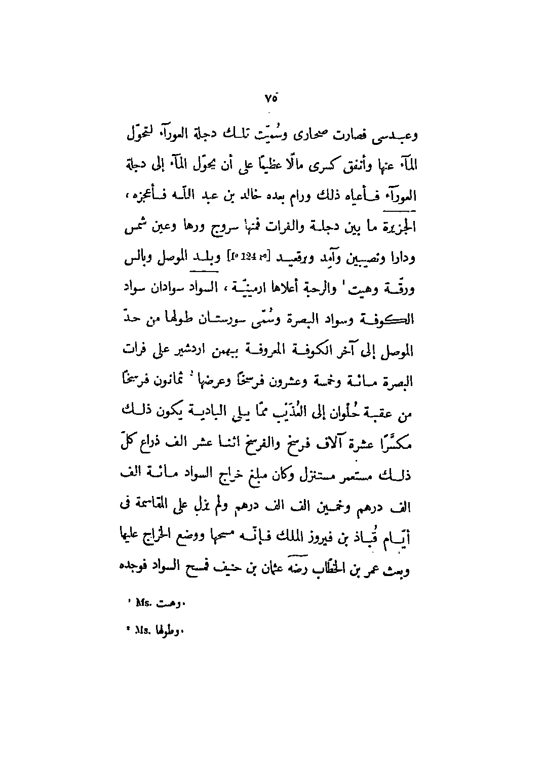 ما بين دجلة والفرات فمنها سروج ورها وعين شمس ودارا ونصيبين وآمد وبرقعيد [F 124 r] وبلد الموصل وبالس ورقة وهيت [1] والرحبة أعلاها ارمينية،