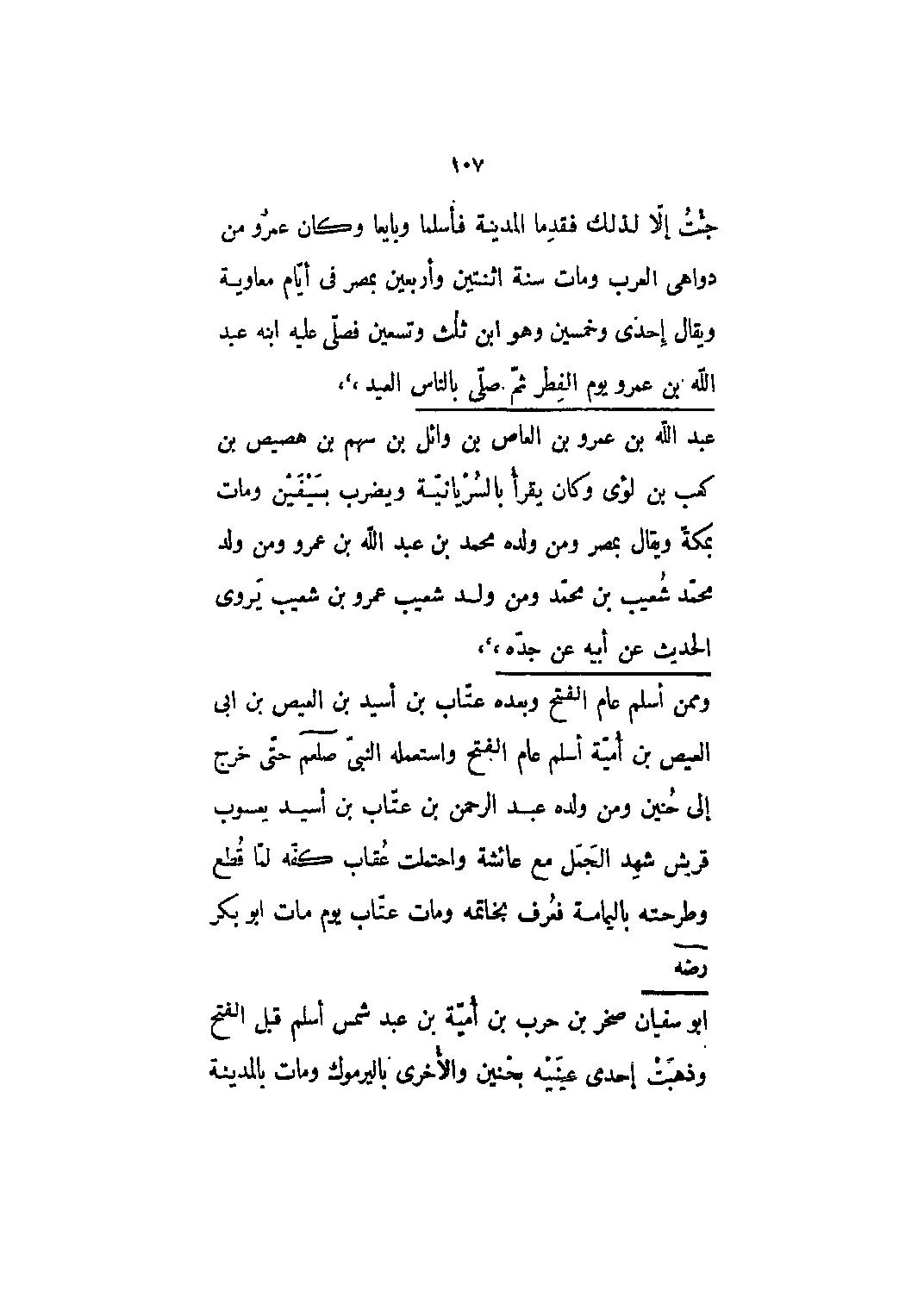 جئت إلّا لذلك فقدما المدينة فأسلما وبايعا وكان عمرو من دواهي العرب ومات سنة اثنتين وأربعين بمصر في أيام معاوية ويقال إحدى وخمسين وهو ابن ثلث وتسعين فصلى عليه ابنه عبد الله بن عمرو يوم الفطر ثم صلى بالناس العيد،،،