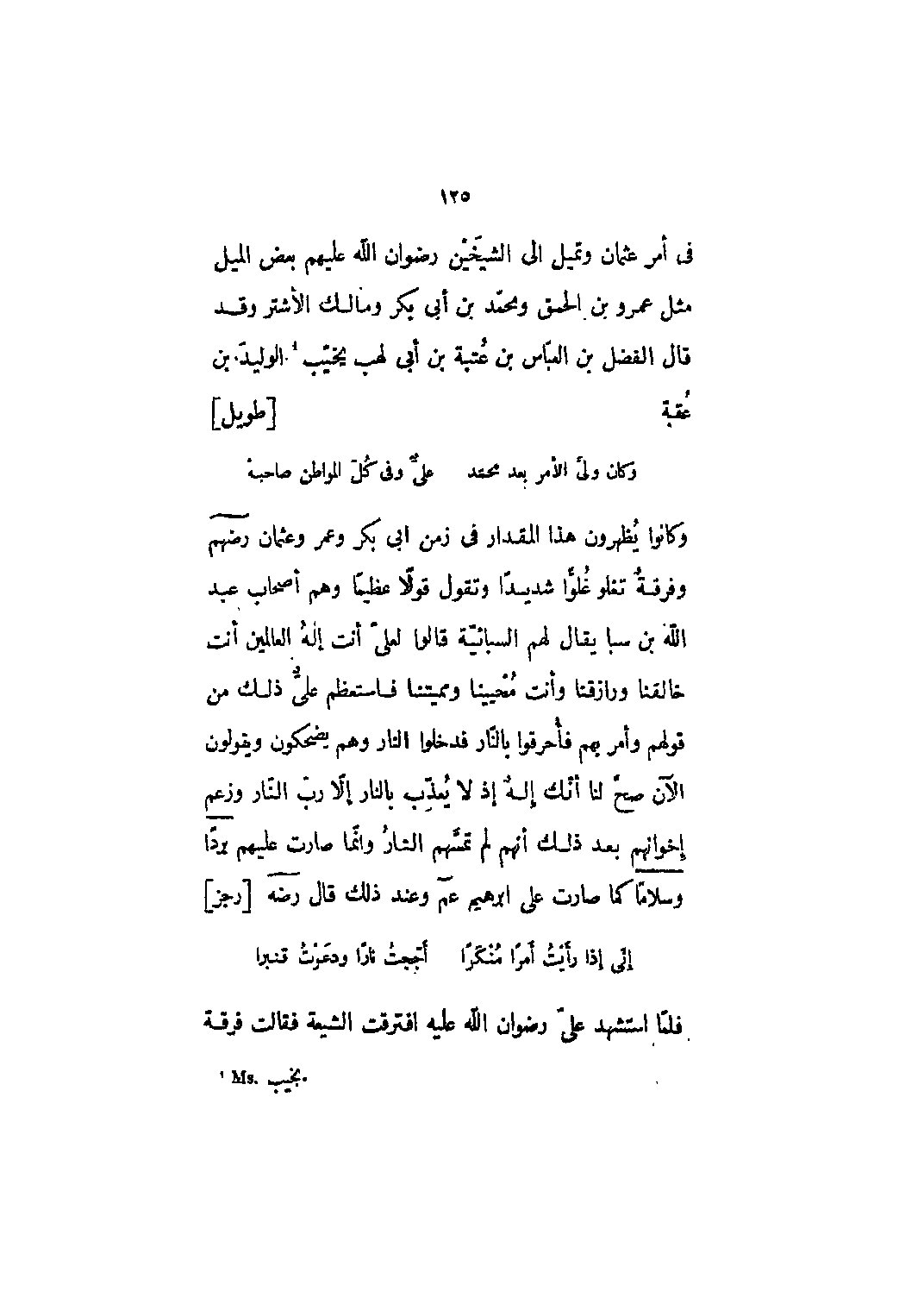 في أمر عثمان وتميل إلى الشيخين رضوان الله عليهم بعض الميل مثل عمرو بن الحمق ومحمد بن أبي بكر ومالك الأشتر وقد قال الفضل بن العباس بن عتبة بن أبي لهب يخيب [1] الوليد بن عقبة [طويل]