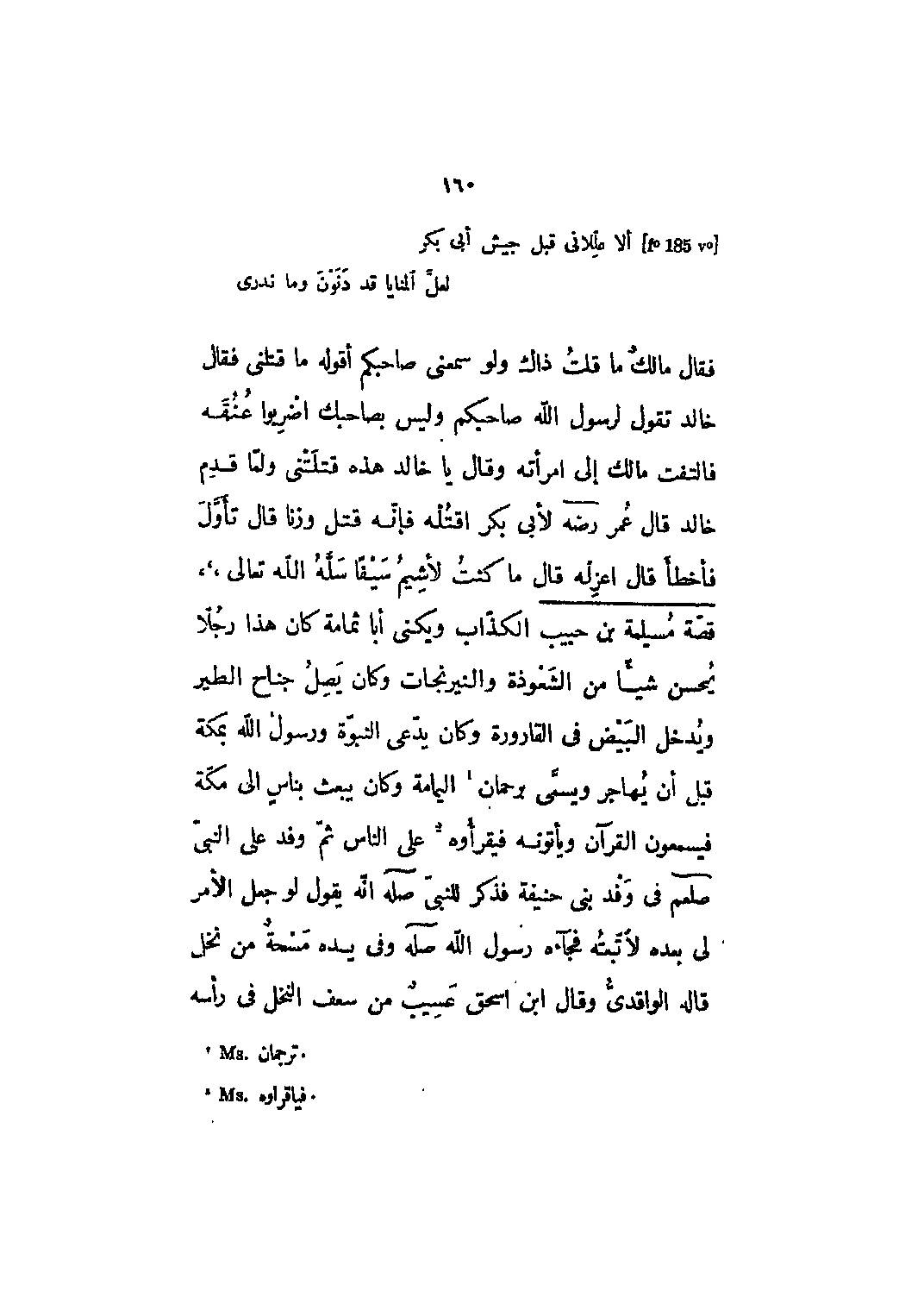 فقال مالك ما قلت ذاك ولو سمعني صاحبكم أقوله ما قتلني فقال خالد تقول لرسول الله صاحبكم وليس بصاحبك اضربوا عنقه فالتفت مالك إلى امرأته وقال يا خالد هذه قتلتني ولما قدم خالد قال عمر رضي الله عنه لأبي بكر اقتله فإنه قتل وزنا قال تأول فأخطأ قال اعزله قال ما كنت لأشيم سيفاً سله الله تعالى،،،