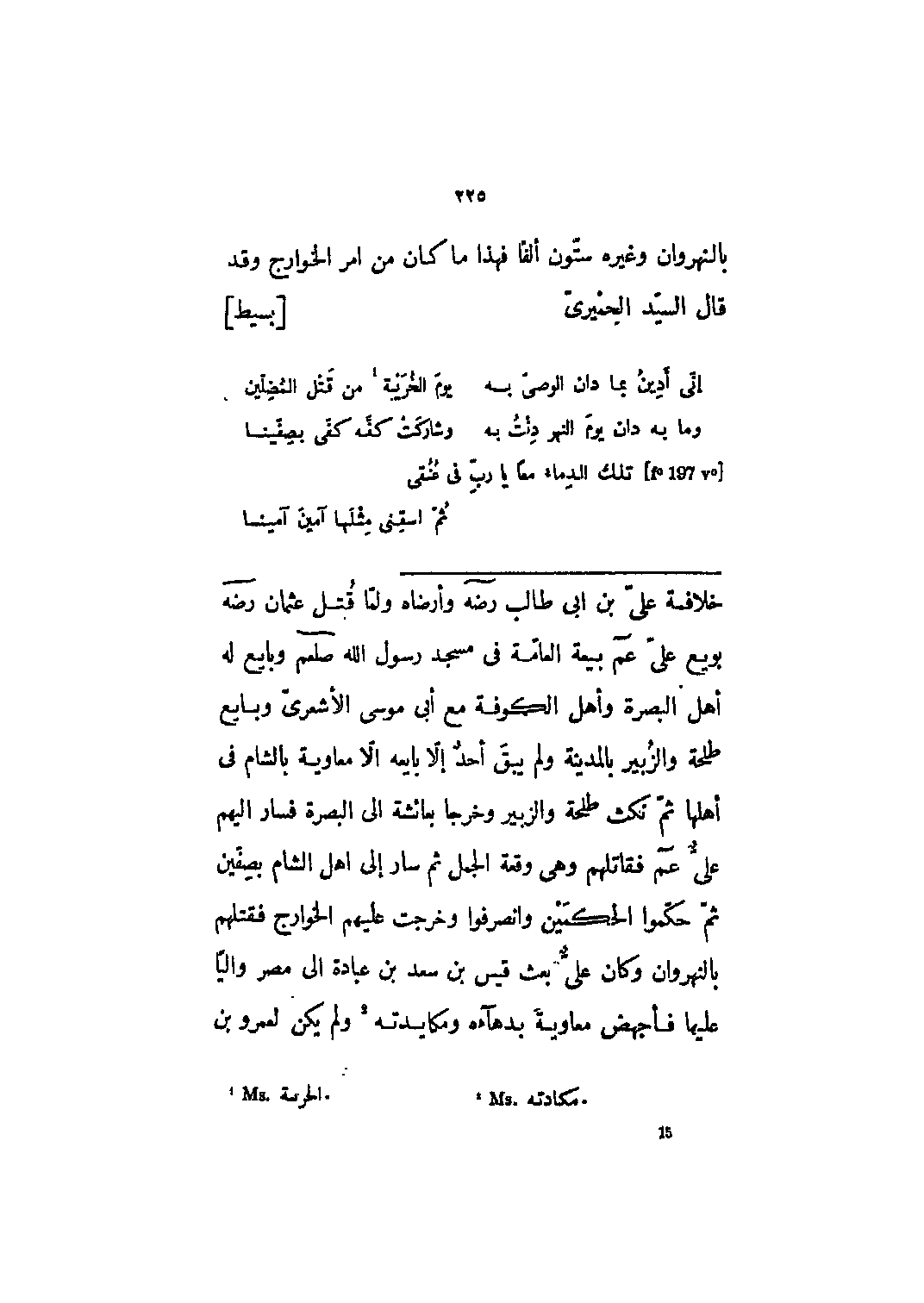 بالنهروان وغيره ستون ألفاً فهذا ما كان من أمر الخوارج وقد قال السيد الحميري [بسيط]