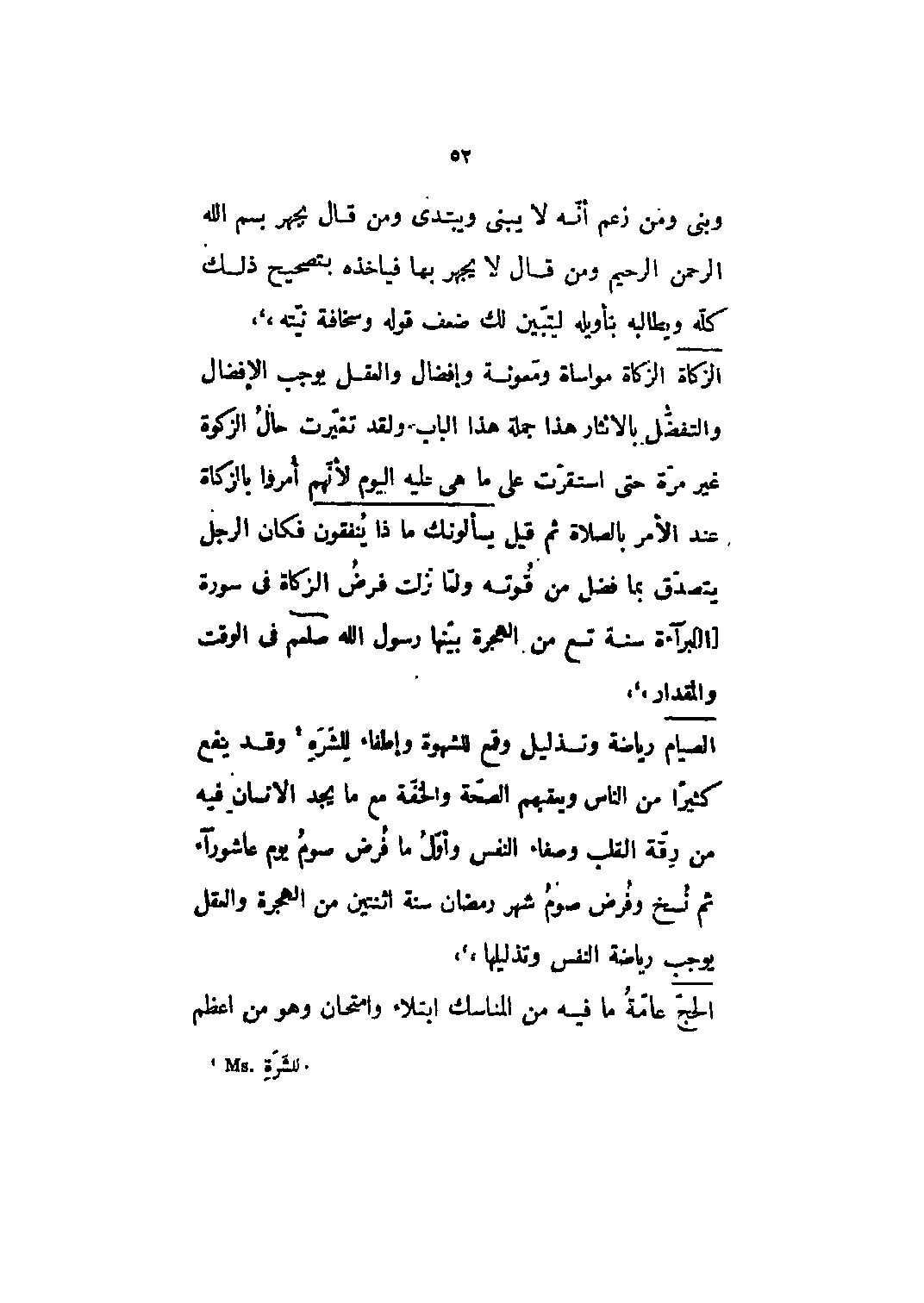 الزكاة مواساة ومعونة وإفضال والعقل يوجب الإفضال والتفضّل بالإيثار هذا جملة هذا الباب. ولقد تغيرت حال الزكاة غير مرة حتى استقرت على ما هي عليه اليوم لأنهم أمروا بالزكاة عند الأمر بالصلاة ثم قيل يَسْئَلُونَكَ ماذا يُنْفِقُونَ 2: 215 فكان الرجل يتصدق بما فضل من قوته ولما نزلت فرض الزكاة في سورة [] البراءة سنة تسع من الهجرة بينها رسول الله صلى الله عليه وسلم في الوقت والمقدار،،،