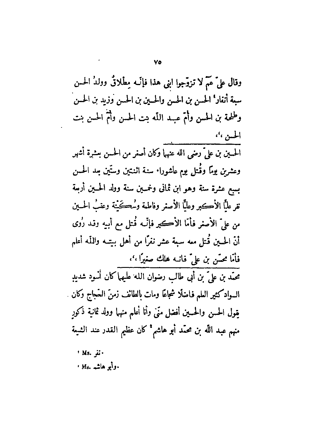 وقال على عم لا تزوجوا ابني هذا فإنه مطلاق وولد الحسن سبعة أنفار [1] الحسن بن الحسن والحسين بن الحسن وزيد بن الحسن وطلحة بن الحسن وأم عبد الله بنت الحسن وأم الحسن بنت الحسن،،،