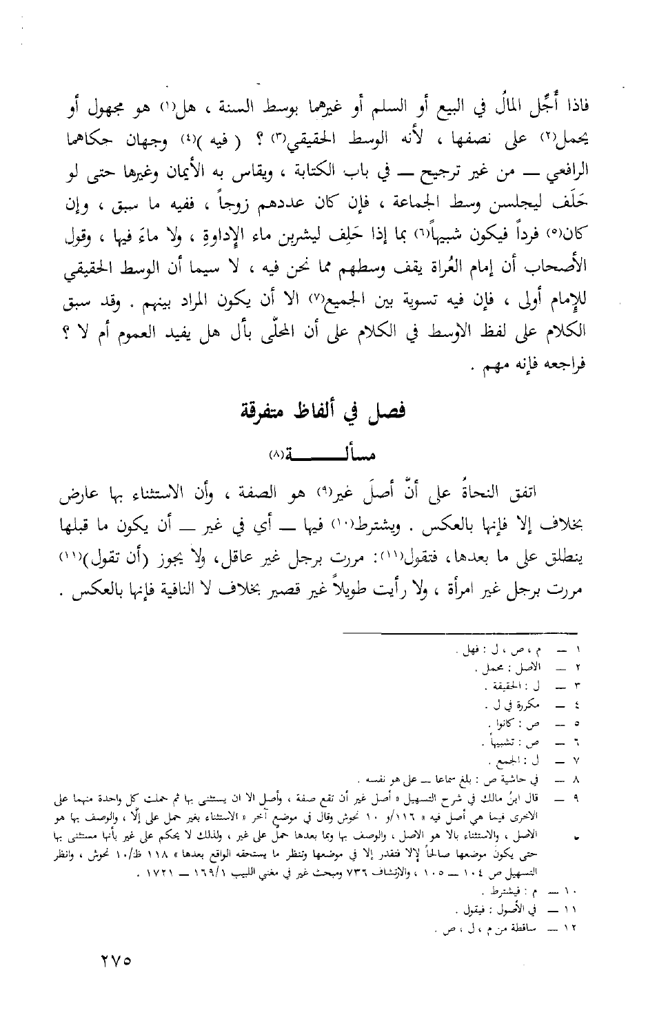 فصل فِي أَلْفَاظ مُتَفَرِّقَة