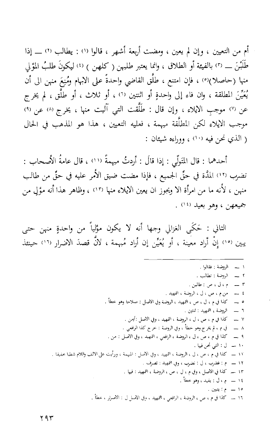 أم من التَّعْيِين وَإِن لم يعين وَمَضَت أَرْبَعَة أشهر قَالُوا يُطَالب إِذا طلبن بالفيئة أَو الطَّلَاق وَإِنَّمَا يعْتَبر طلبهن كُلهنَّ ليَكُون طلب الْمولي مِنْهَا حَاصِلا فَإِن امْتنع طلق القَاضِي وَاحِدَة على الْإِبْهَام وَمنع مِنْهُنَّ إِلَى أَن يعين الْمُطلقَة وَإِن فَاء إِلَى وَاحِدَة أَو اثْنَتَيْنِ أَو ثَلَاث أَو طلق لم يخرج عَن مُوجب الْإِيلَاء وَإِن قَالَ طلقت الَّتِي آلَيْت مِنْهَا يخرج عَن مُوجب الْإِيلَاء لَكِن الْمُطلقَة مُبْهمَة فَعَلَيهِ التَّعْيِين هَذَا هُوَ الْمَذْهَب فِي الْحَال الَّذِي نَحن فِيهِ ووراءه شَيْئَانِ